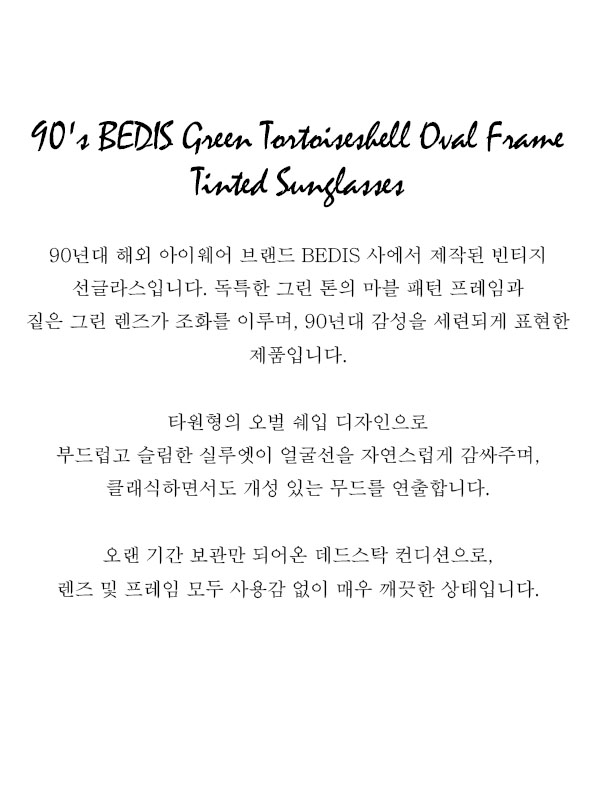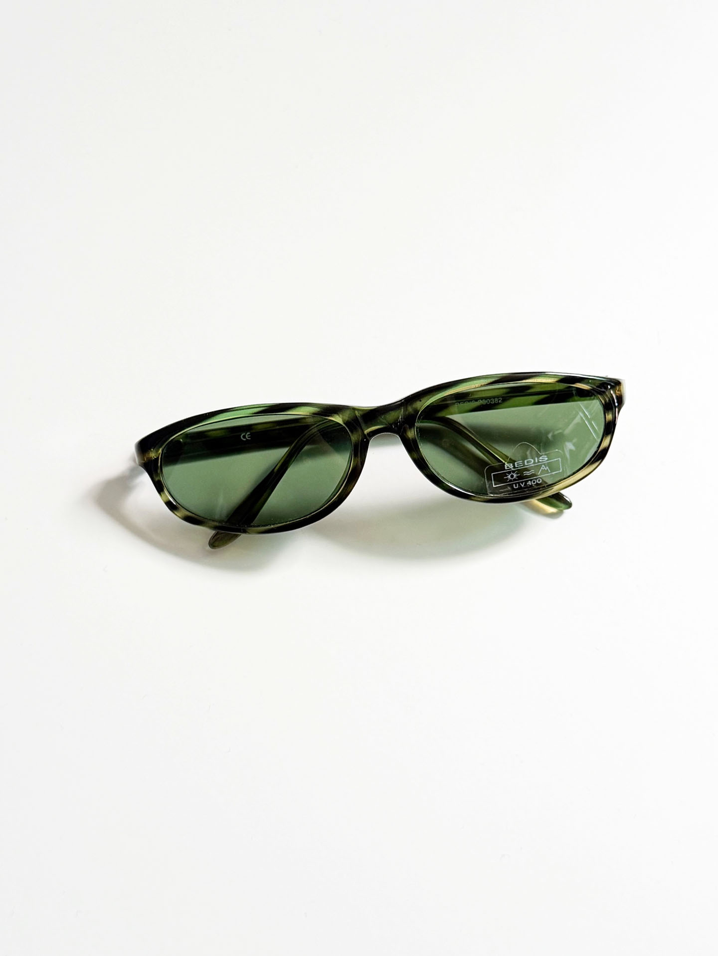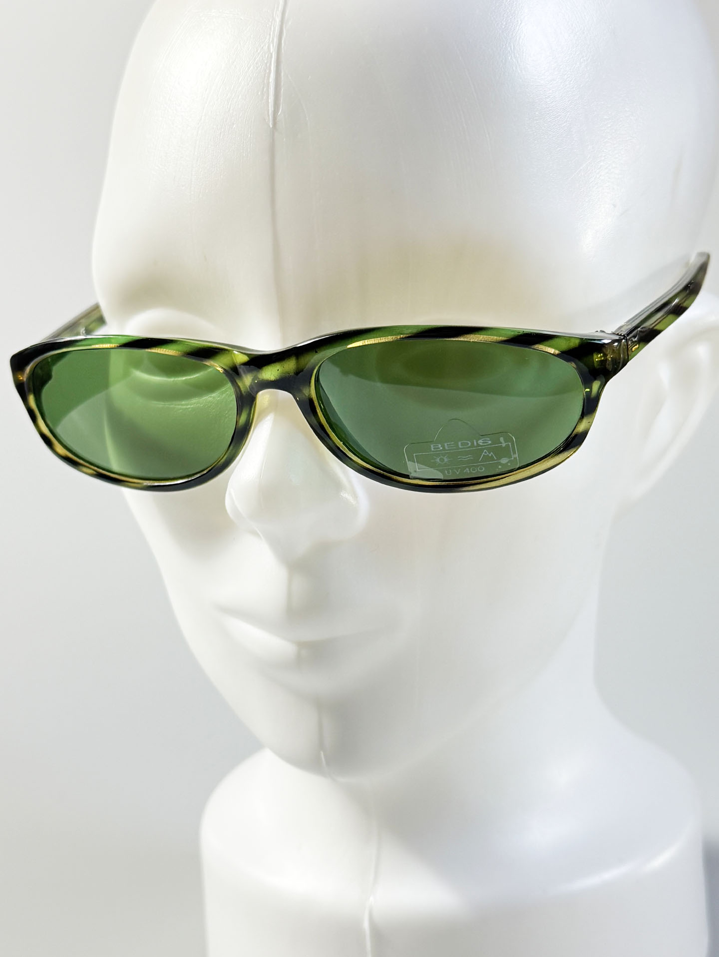 90's BEDIS Green Tortoiseshell Oval Frame Tinted Sunglasses