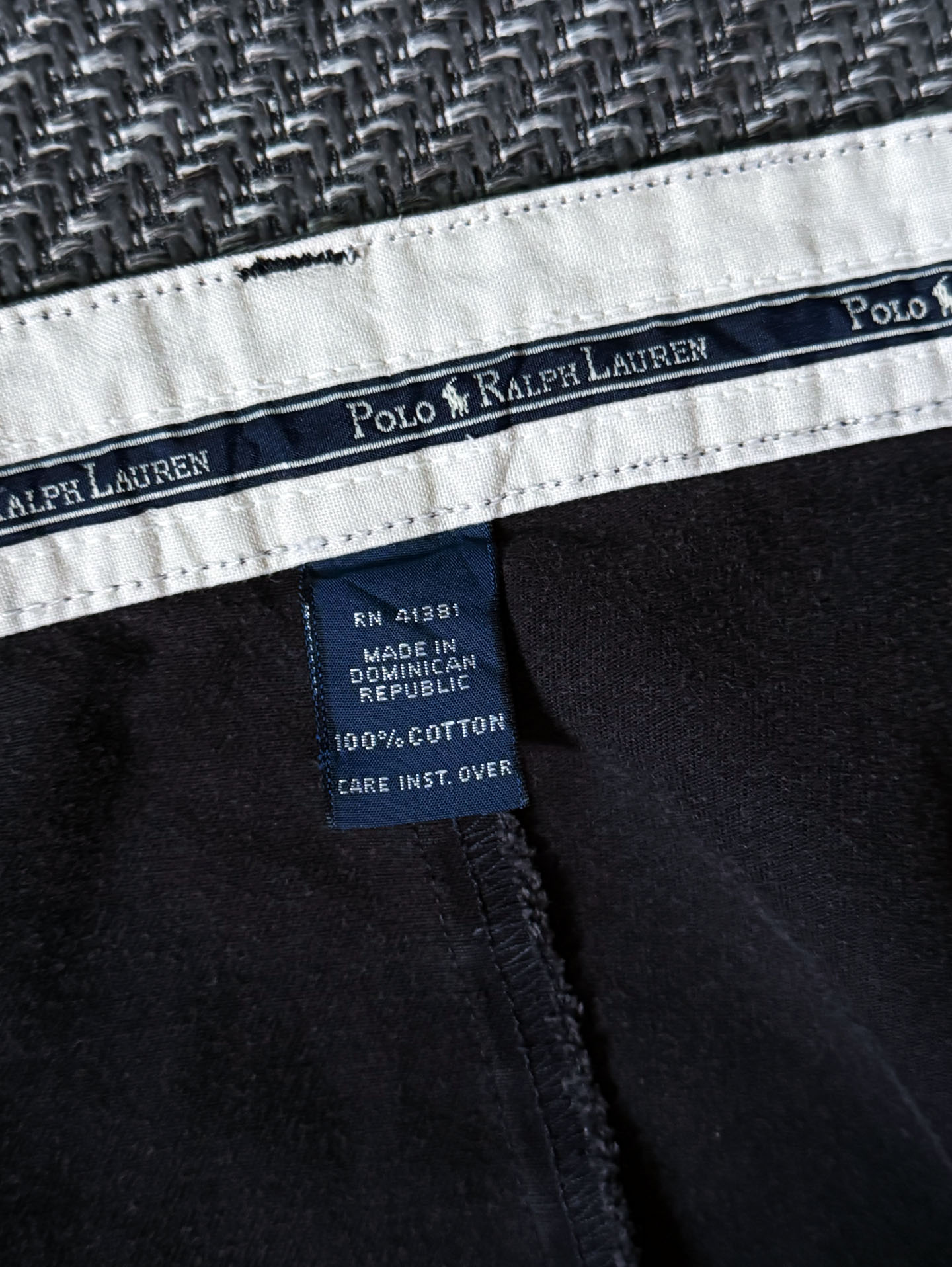 100% 코튼 트윌 원단으로 제작되어 부드럽지만 견고한 질감을 지니며, 딥 블랙 컬러 특유의 워시드 된 색감이 포멀과 캐주얼 스타일 모두에 어울립니다. YKK 지퍼 플라이, 후면의 웰트 포켓과 버튼 디테일, 그리고 Polo Chino by Ralph Lauren의 시그니처 백 라벨이 특징입니다. 전반적으로 하자 없는 우수한 컨디션을 유지하고 있으며, 폴로 치노 라인의 클래식한 아메리칸 트래디셔널 무드를 잘 보여주는 빈티지 팬츠입니다. 실측 36정도 되는 사이즈입니다.