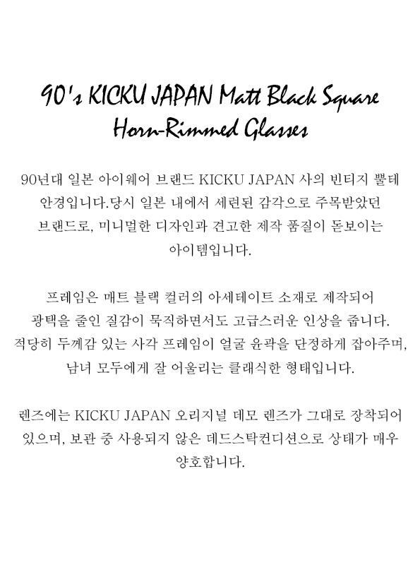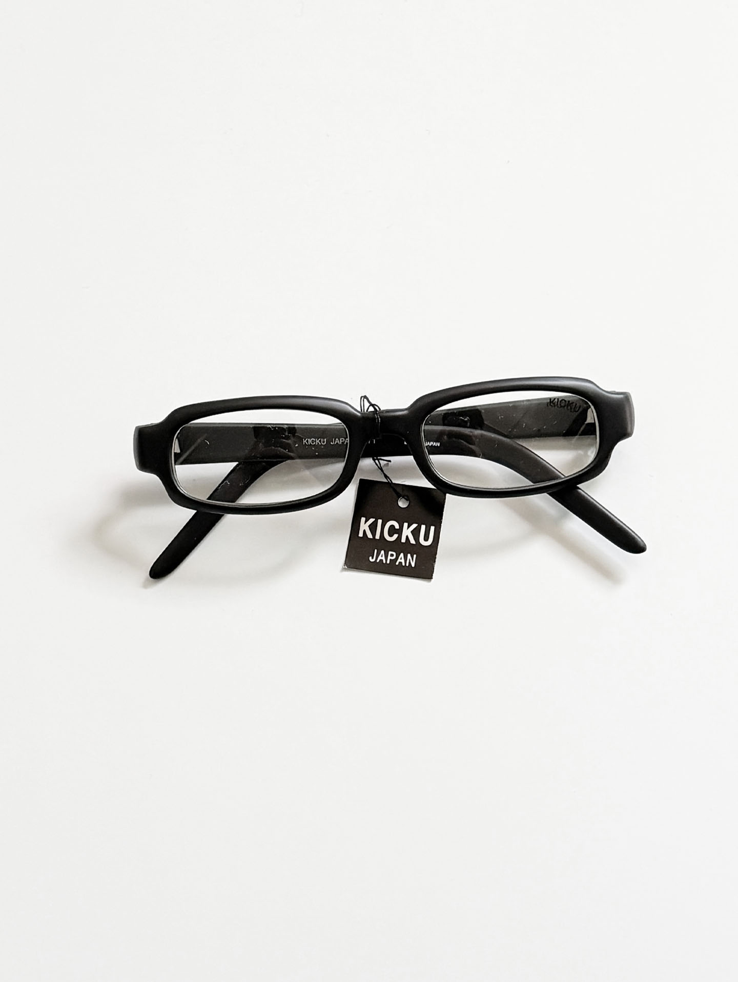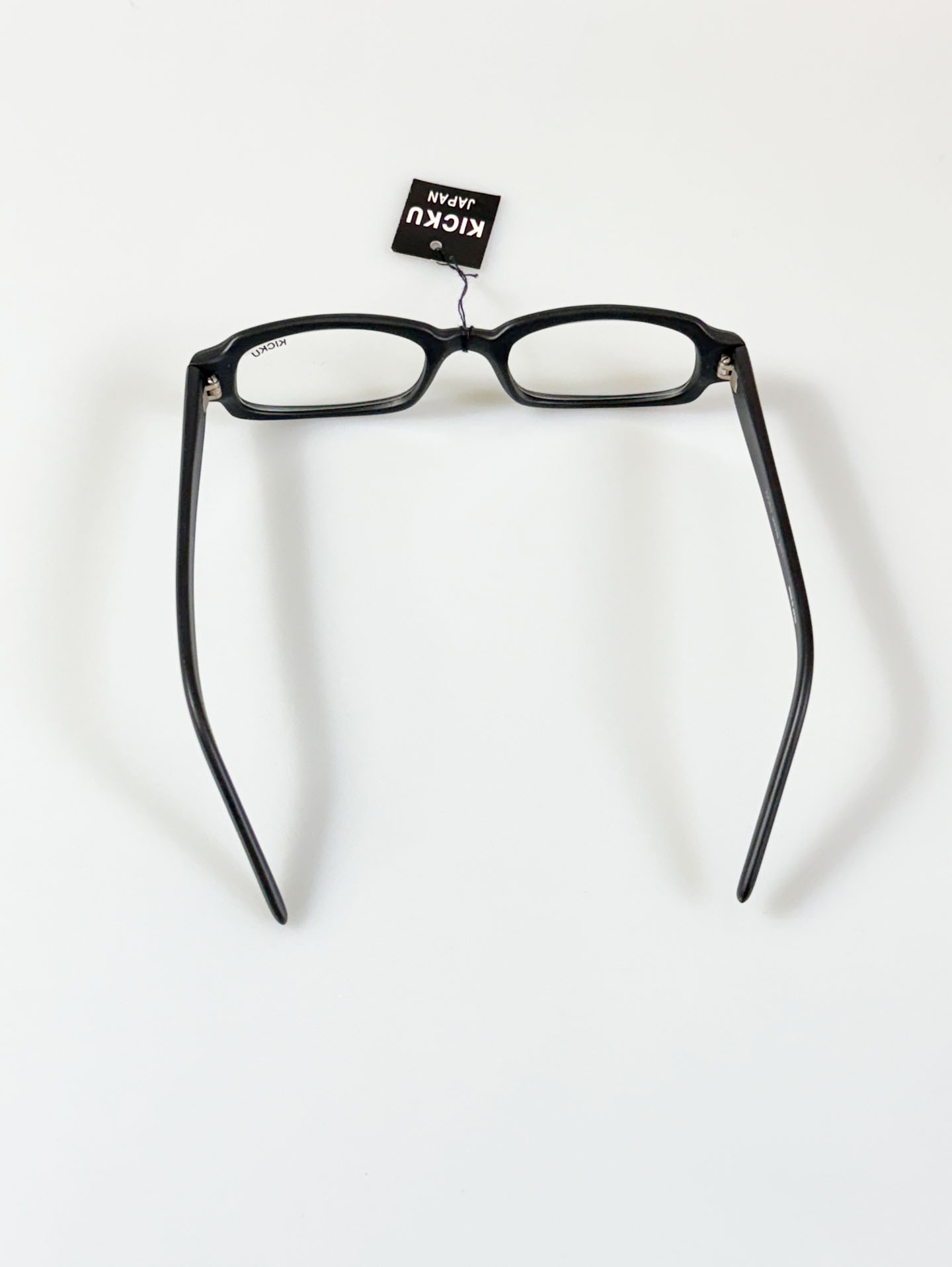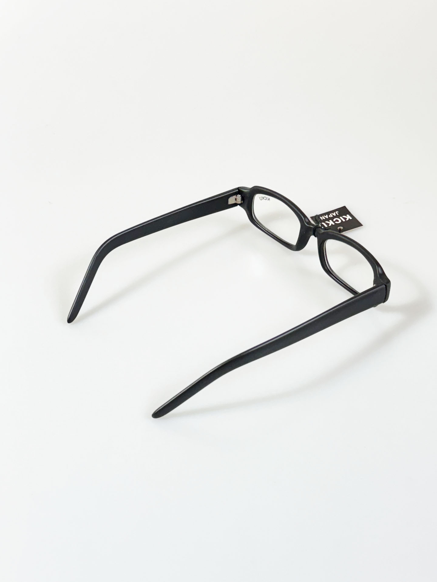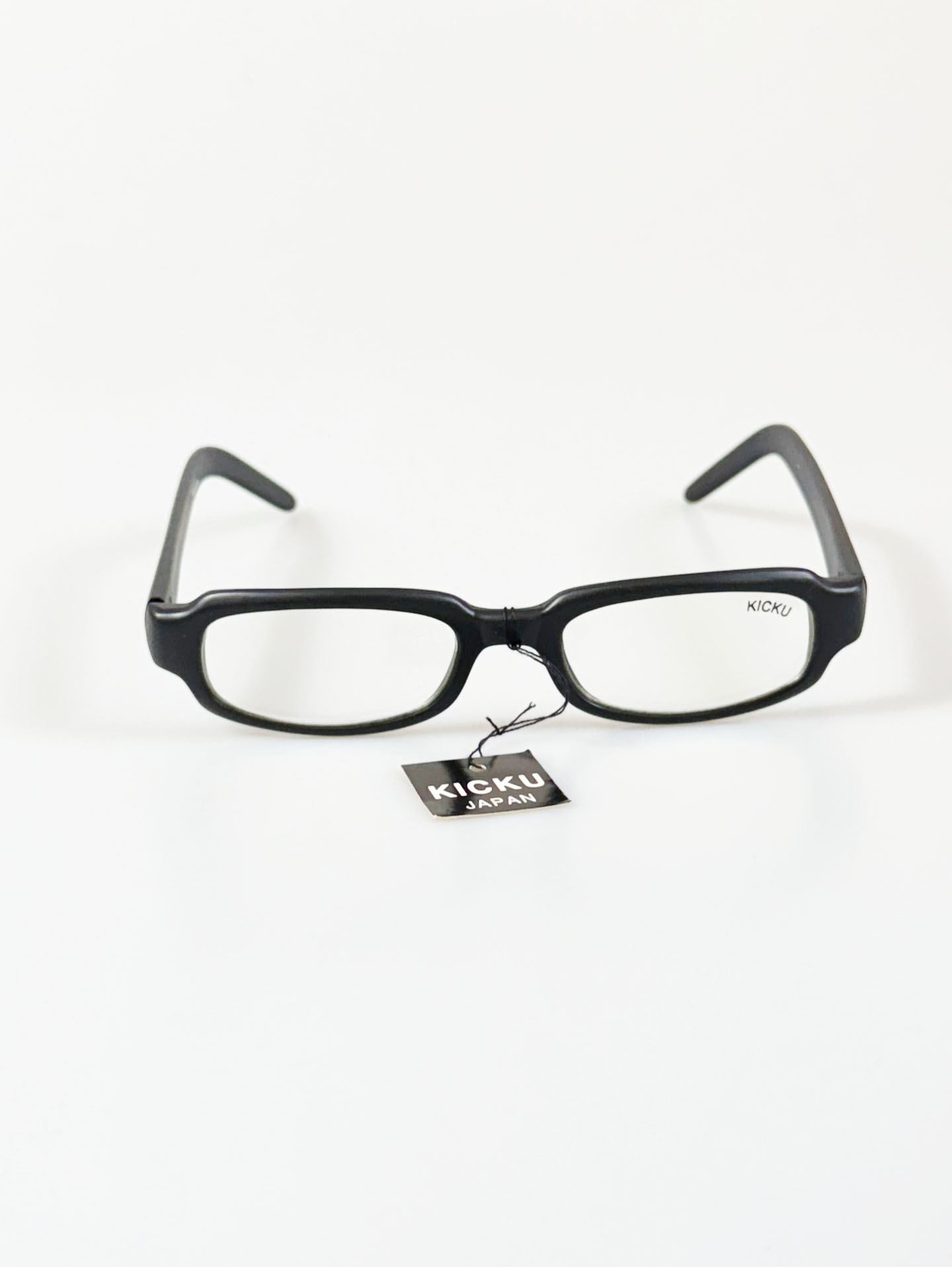 90's KICKU JAPAN Matt Black Square Horn-Rimmed Glasses