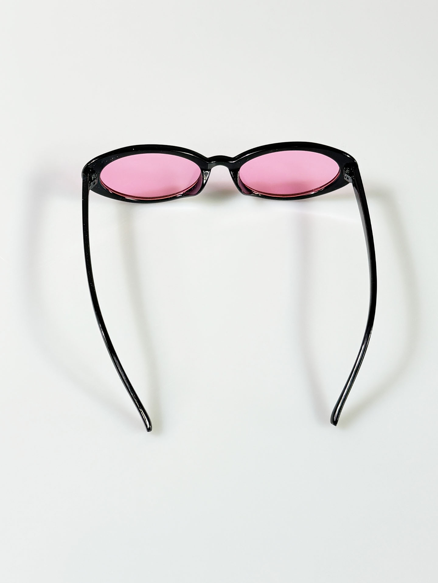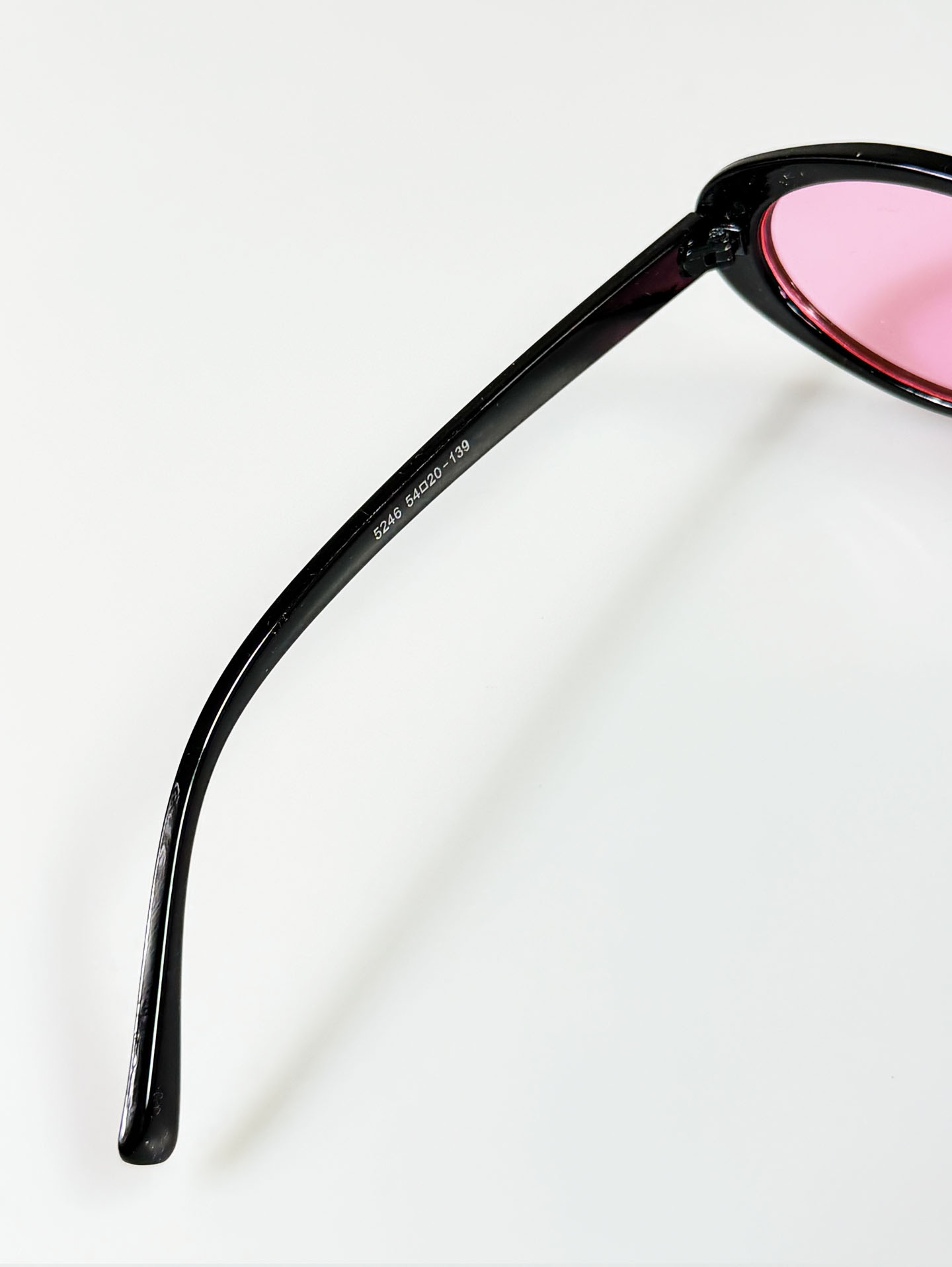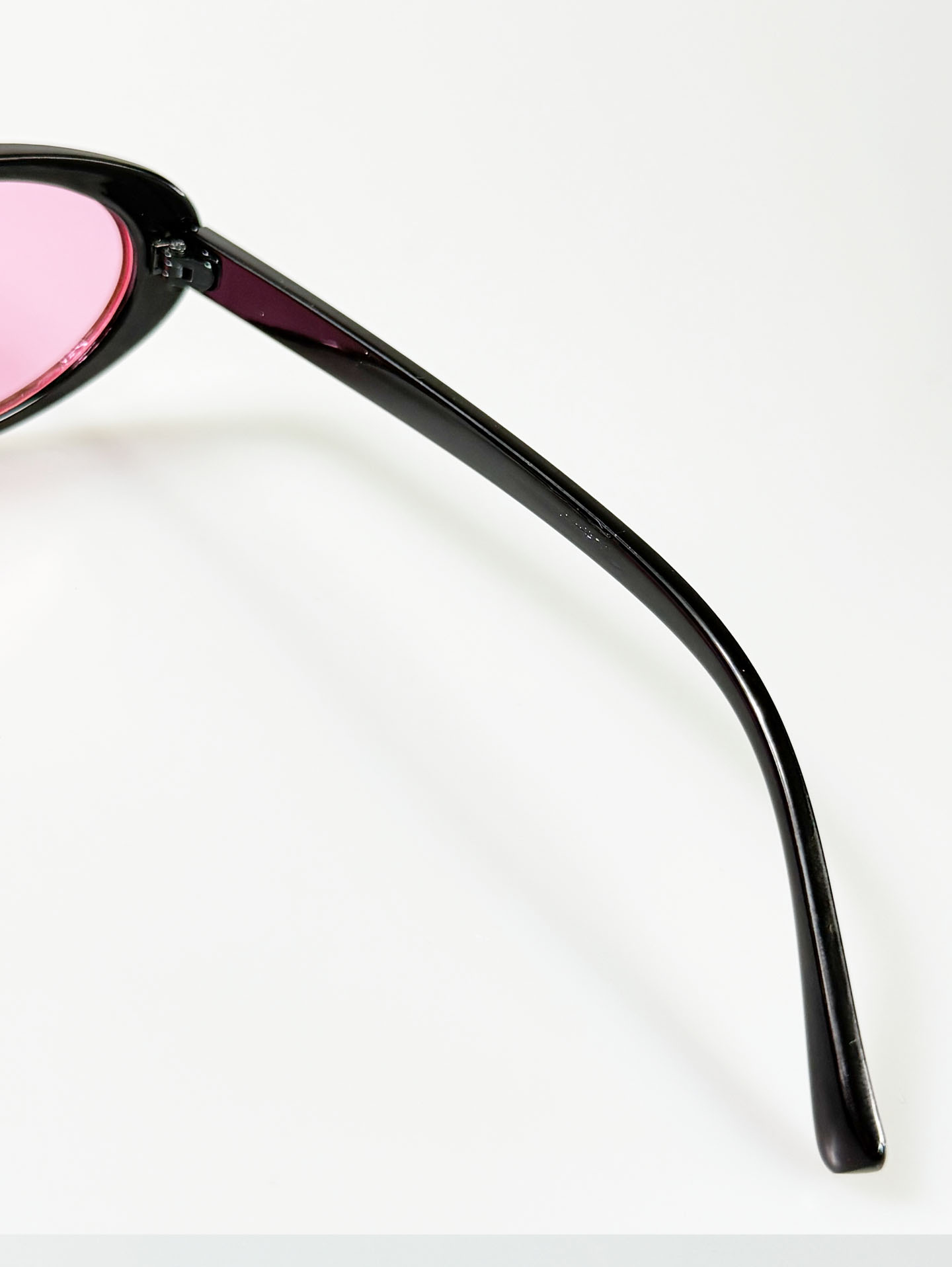 90's Black Cat Eye Horn-Rimmed Pink Tinted Sunglasses