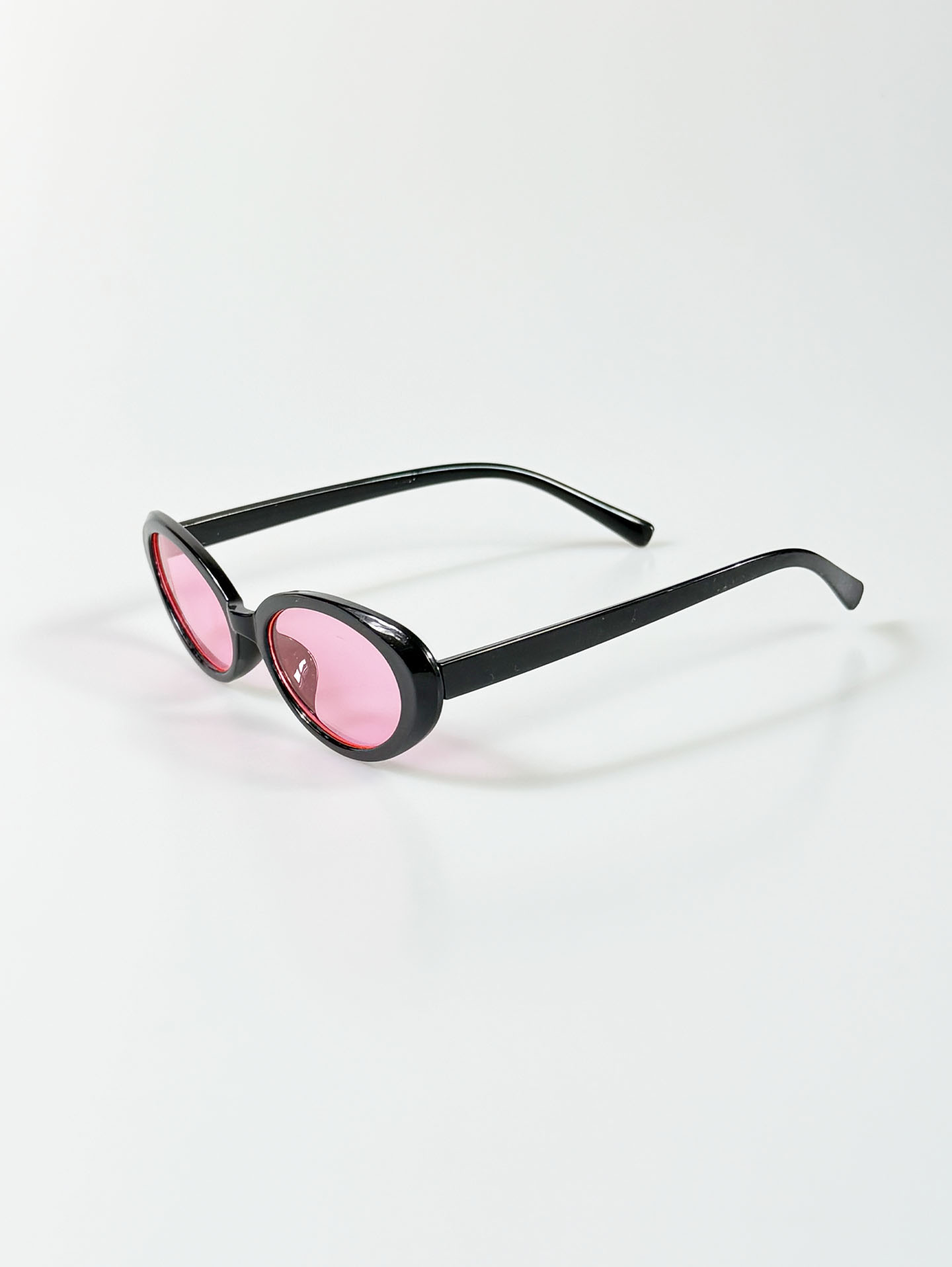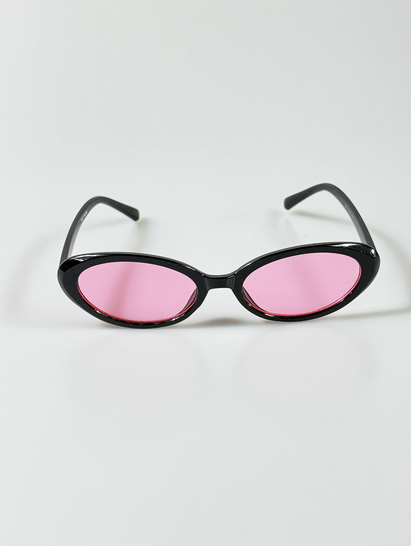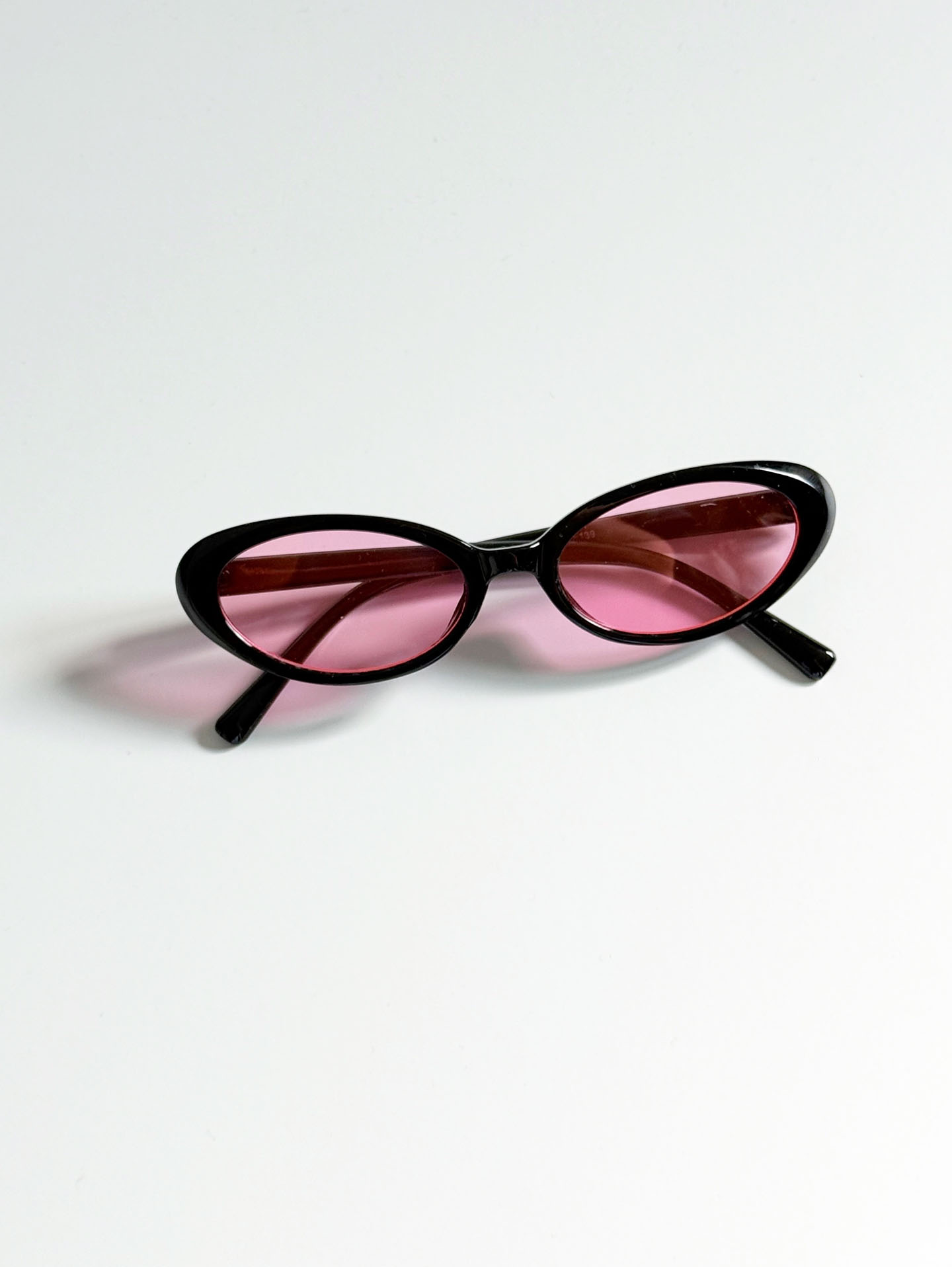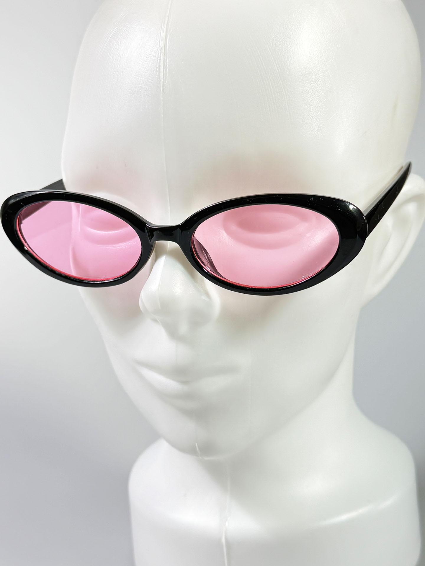 90's Black Cat Eye Horn-Rimmed Pink Tinted Sunglasses