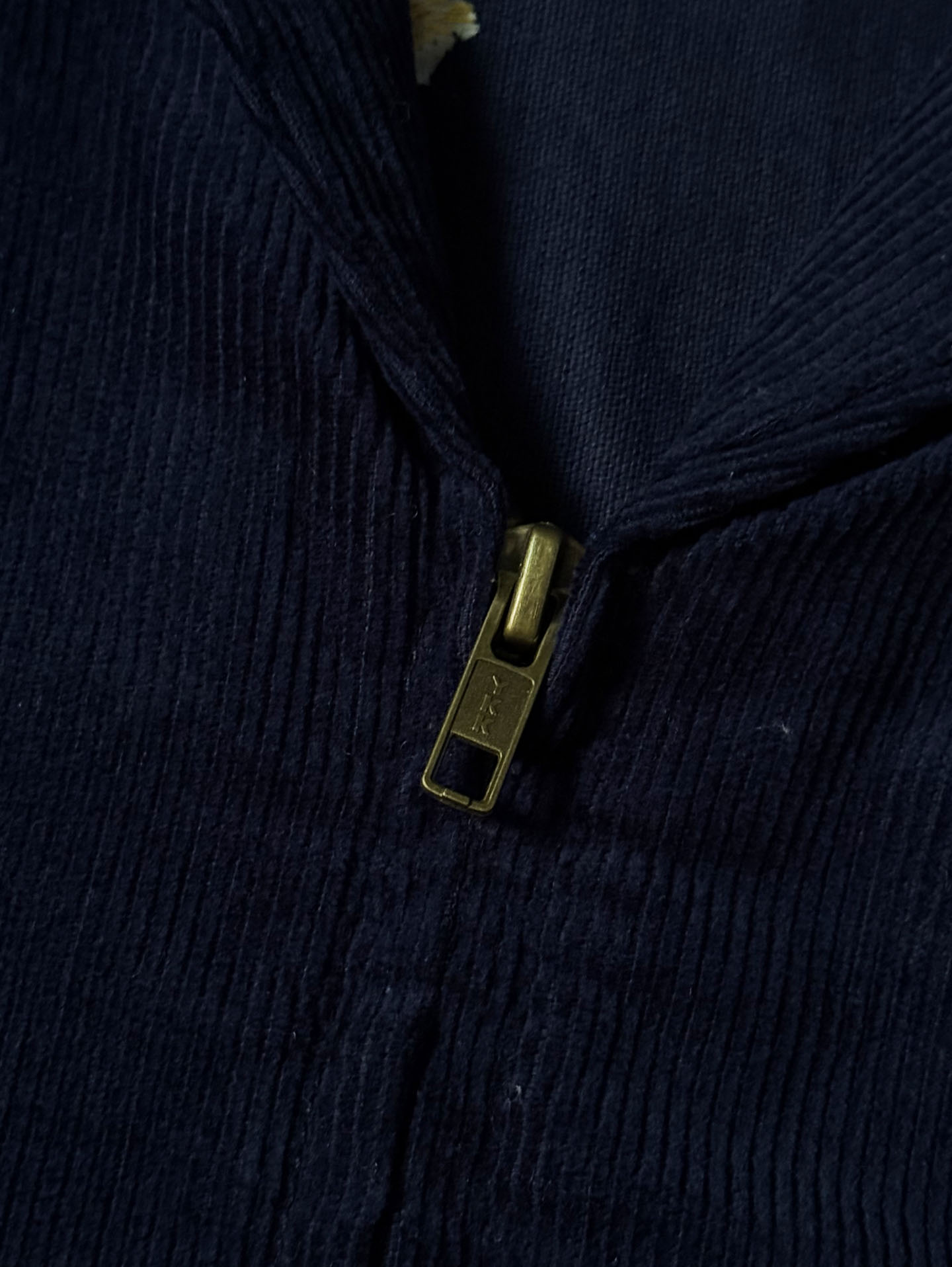 YKK 황동 지퍼, 플랩 포켓, 사이드 어드저스트 탭 등 워크 재킷의 실용적인 요소가 결합되어 있으며, 적당한 두께감의 코튼 코듀로이 소재로 간절기 시즌에 착용하기 좋습니다. 전체적으로 하자 없는 양호한 컨디션을 유지하고 있으며, 빈티지 아메리칸 유니폼 감성을 잘 살린 리이슈/복각 스타일의 FFA 자켓입니다. 실측 105정도 되는 사이즈입니다.