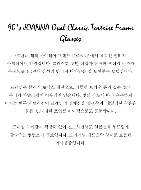 90's JOANNA Oval Classic Tortoise Frame Glasses