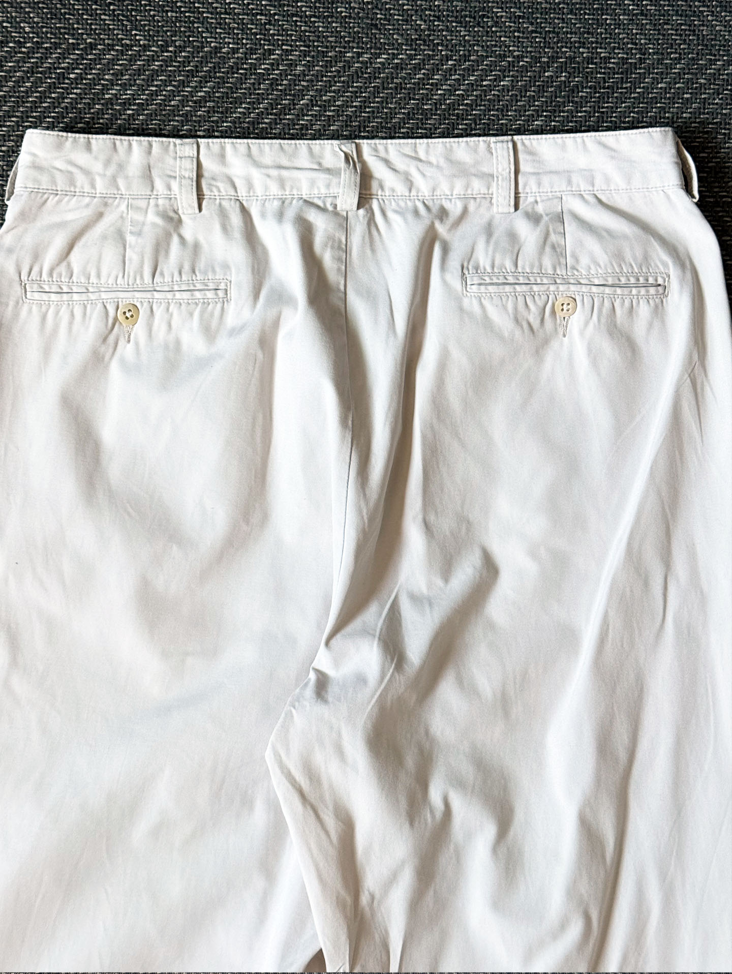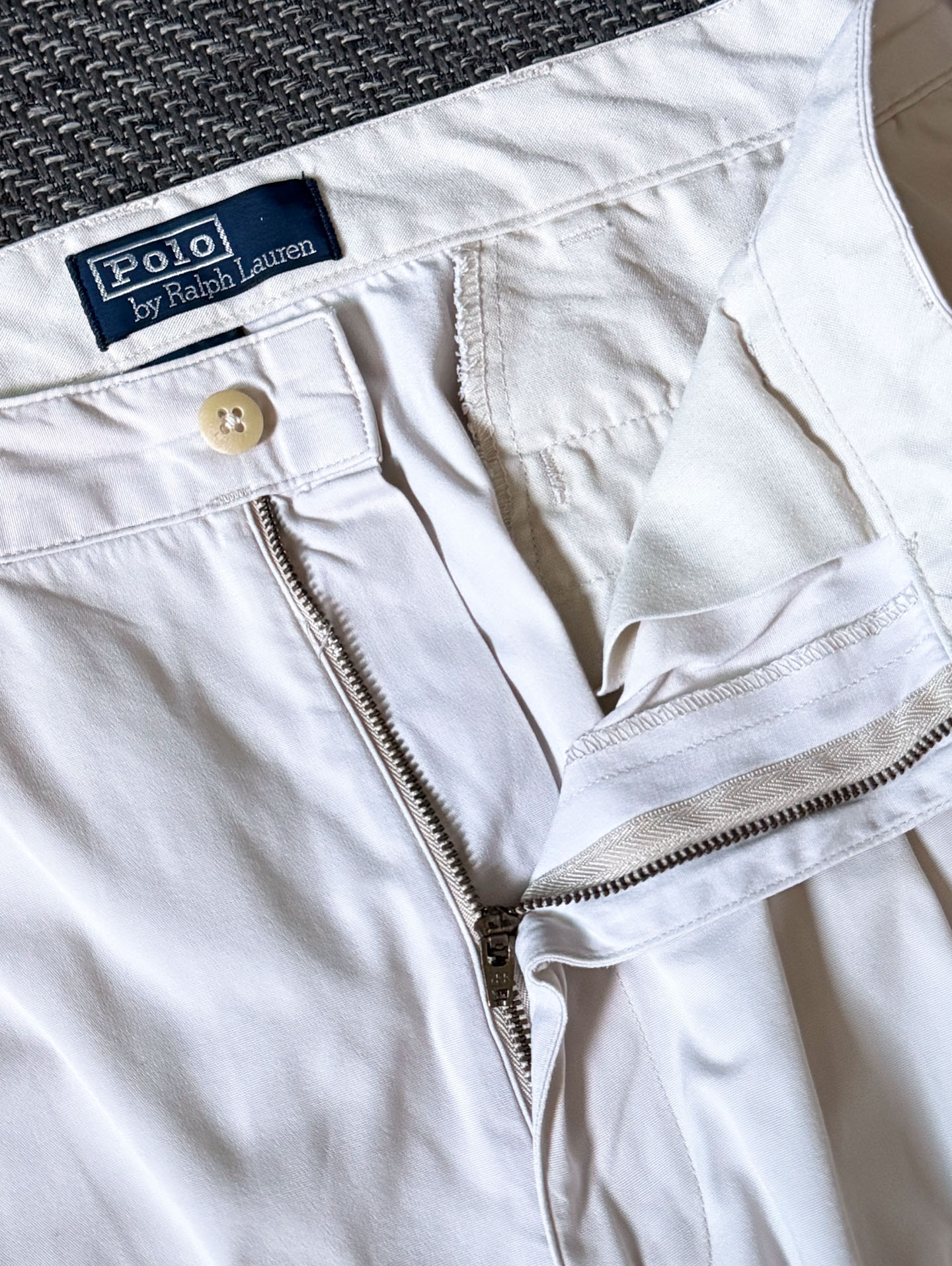 은은한 오프 화이트 컬러가 클래식하면서도 세련된 분위기를 연출합니다. 전체적으로 하자 없는 양호한 컨디션으로, Polo 치노 라인의 정통 클래식 감성을 그대로 느낄 수 있는 빈티지 아이템입니다. 실측 34정도 되는 사이즈입니다.
