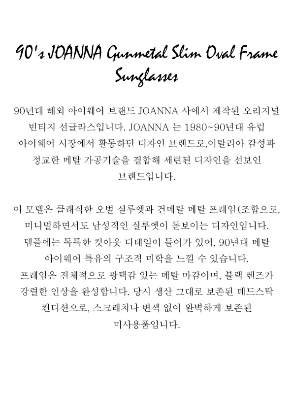 90's JOANNA Gunmetal Slim Oval Frame Sunglasses