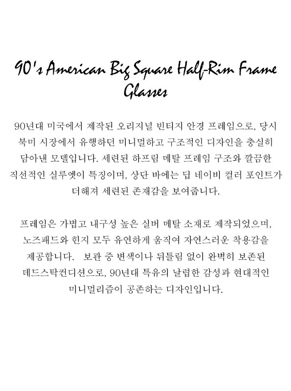 90's American Big Square Half-Rim Frame Glasses
