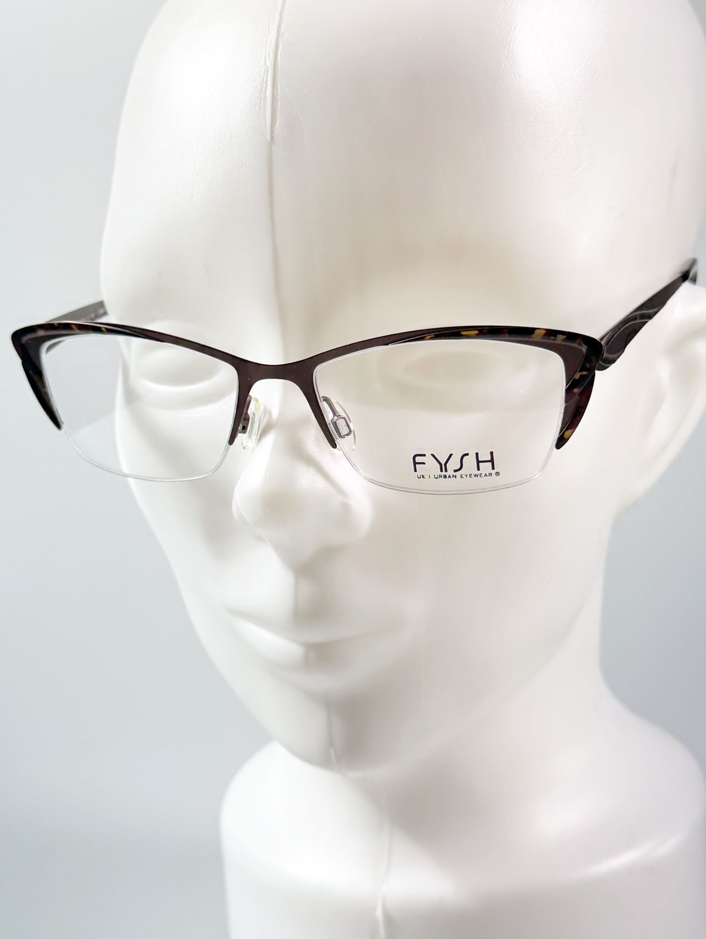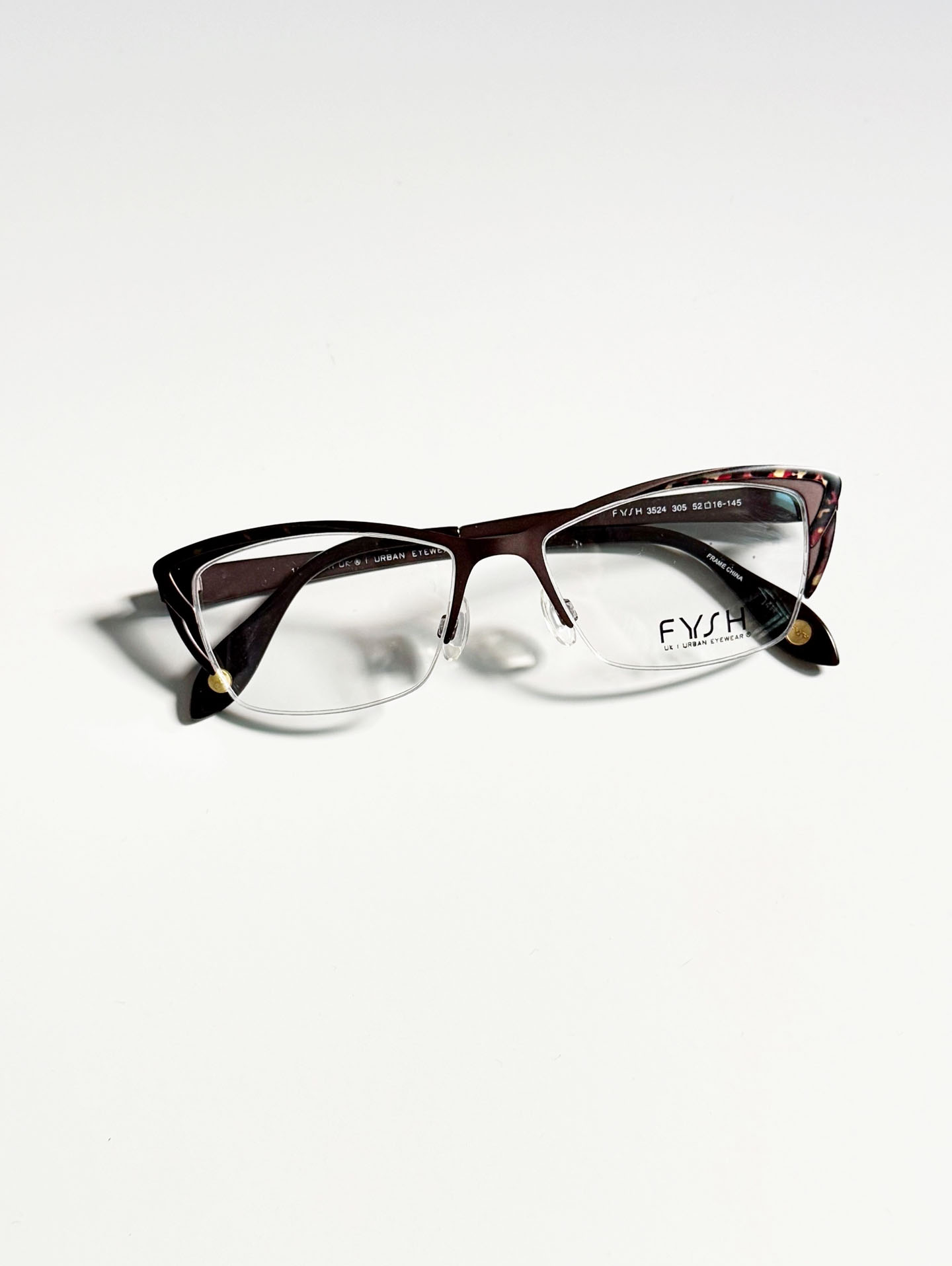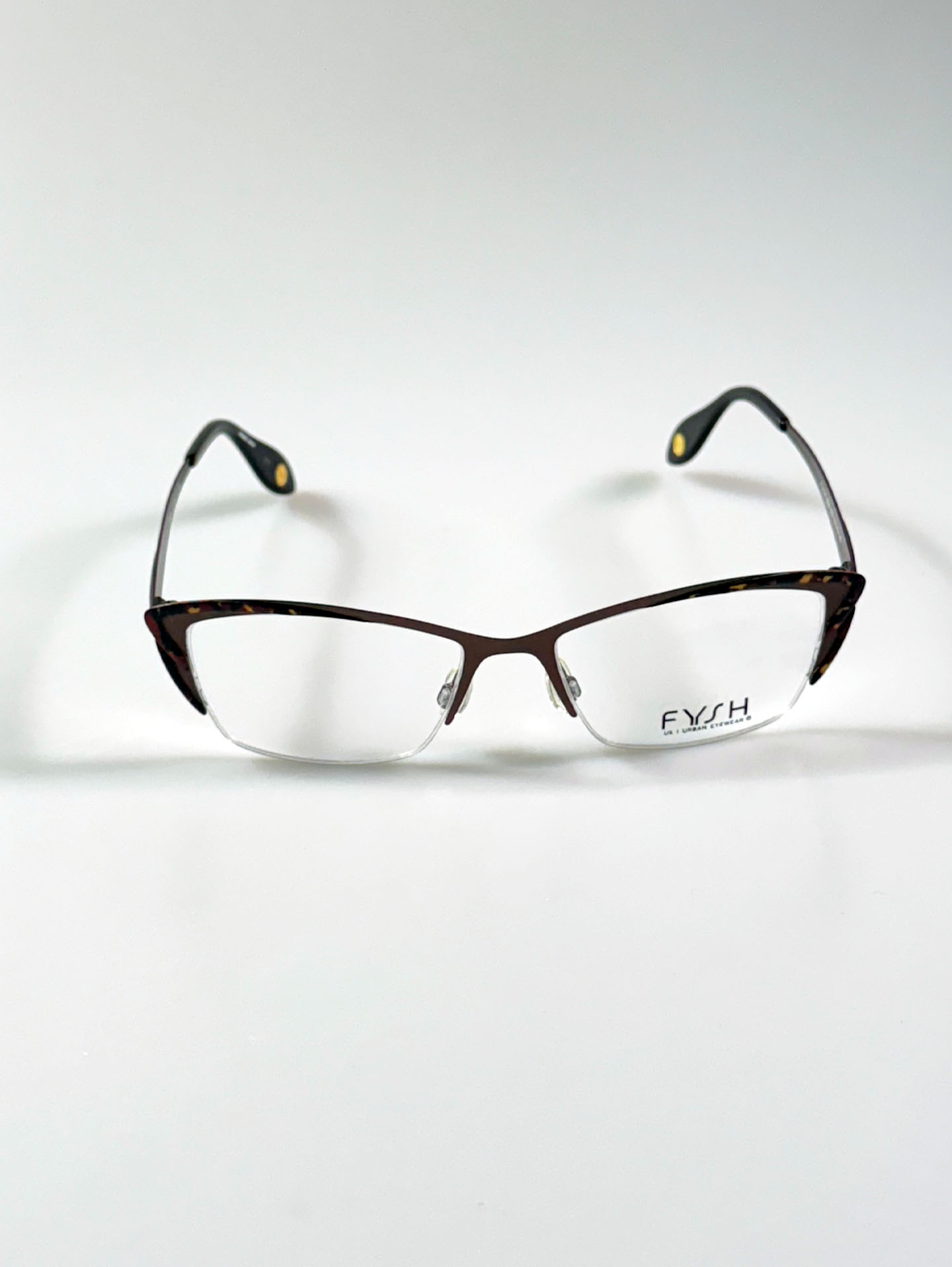 FYSH Cat-Eye Semi-Rimless Brown & Tortoise Metal Frame Glasses