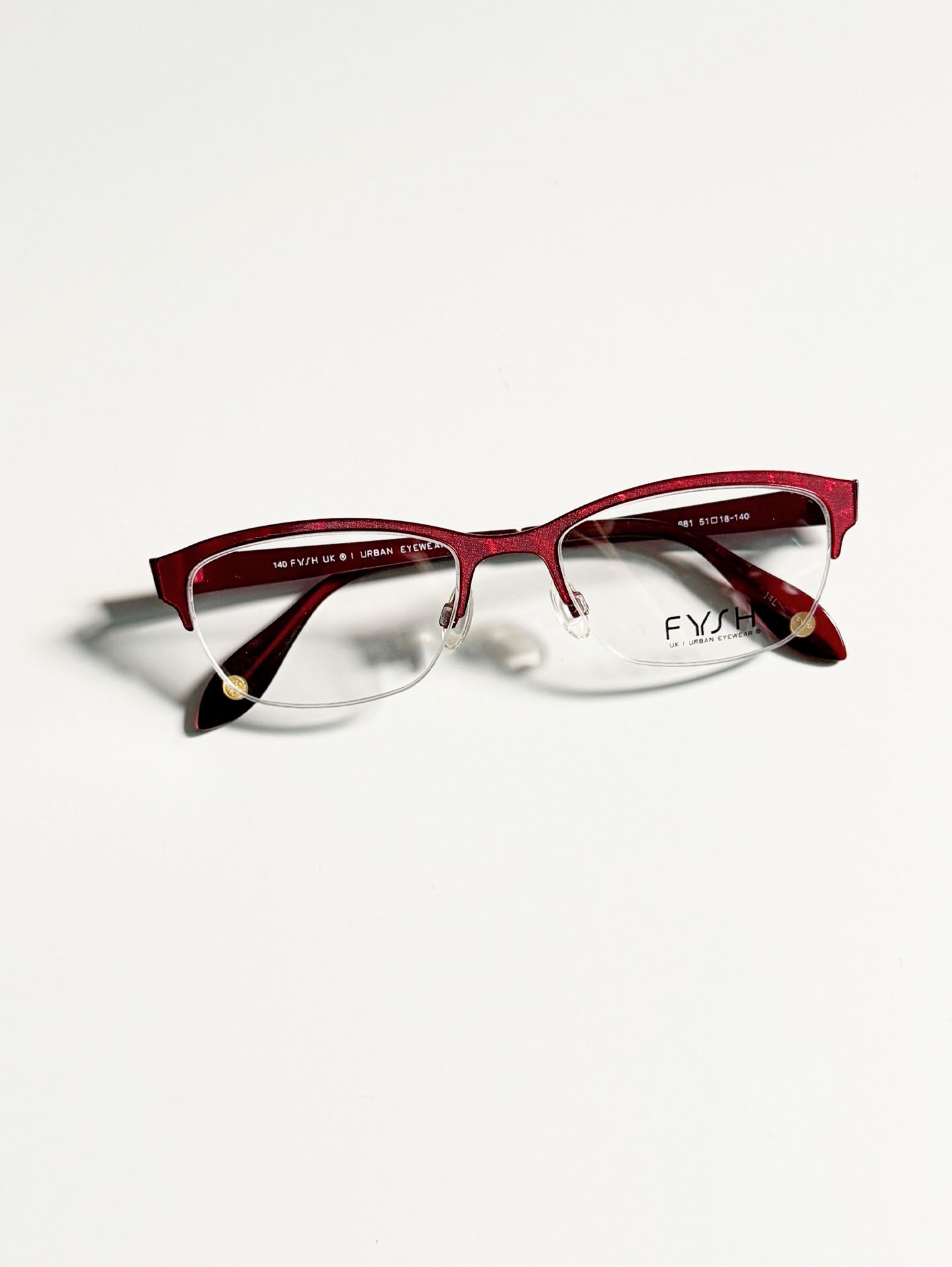FYSH Semi-Rimless Red&Gloss Metal Frame Glasses