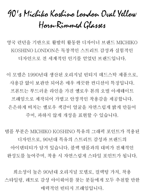90's Michiko Koshino London Oval Yellow Horn-Rimmed Glasses