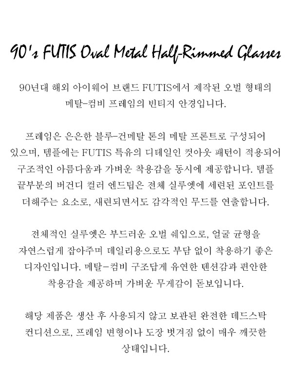 90's FUTIS Oval Metal Half-Rimmed Glasses
