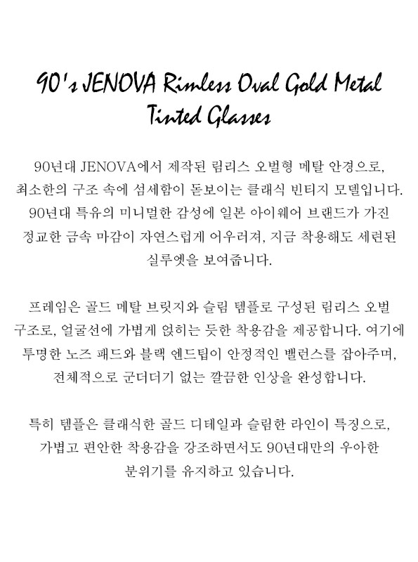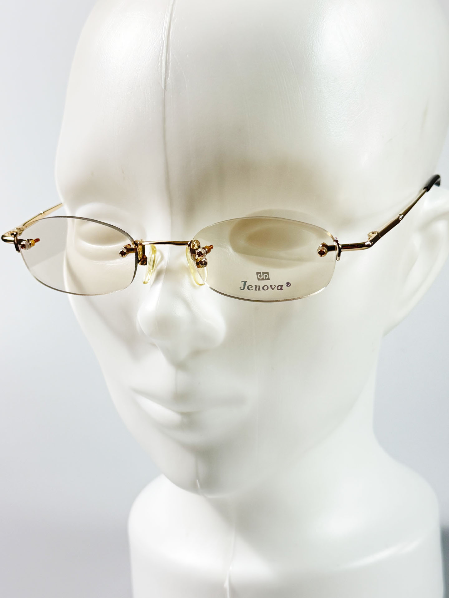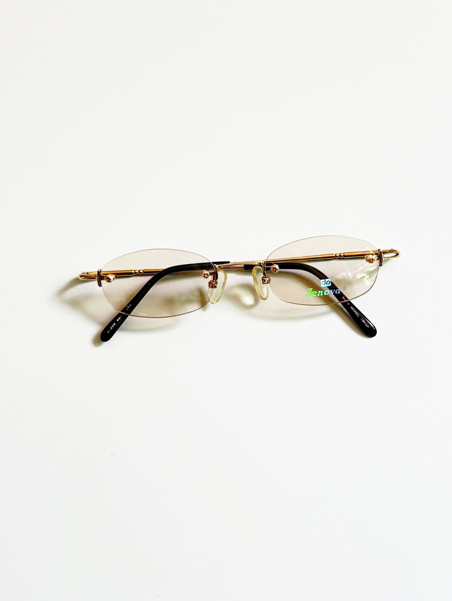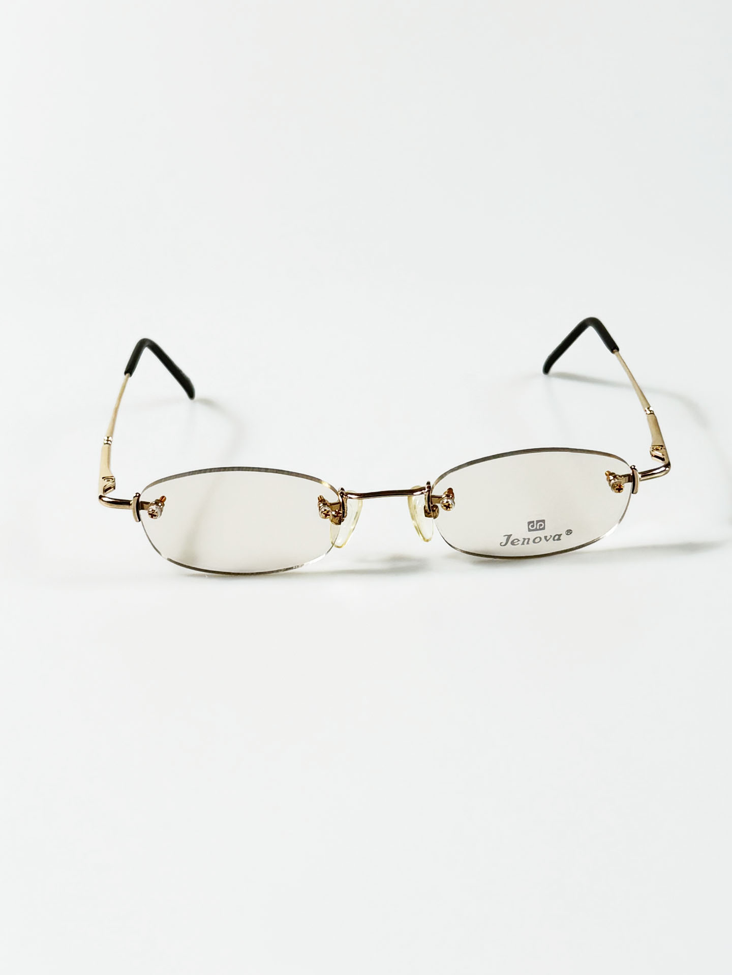 90's JENOVA Rimless Oval Gold Metal Tinted Glasses