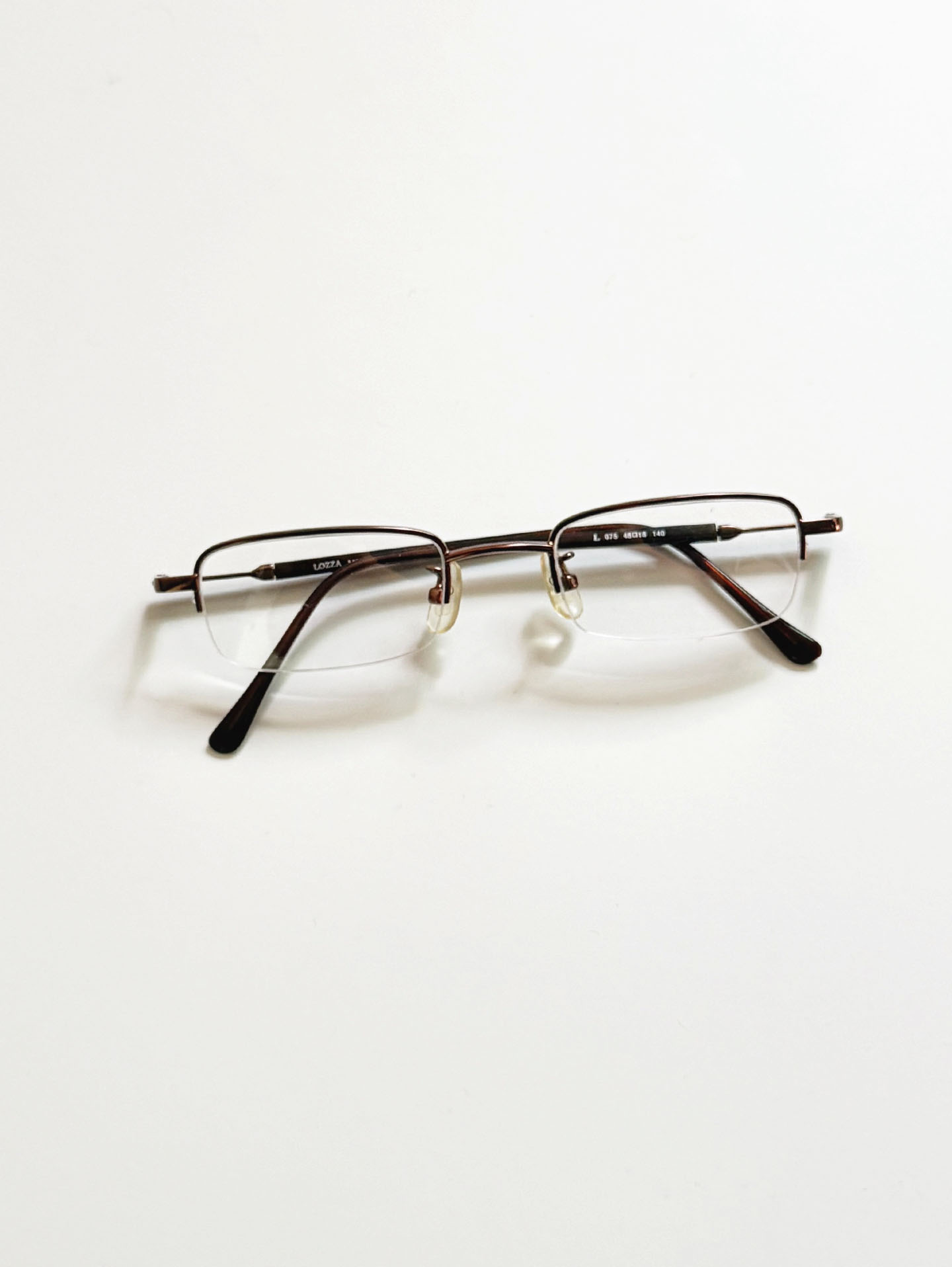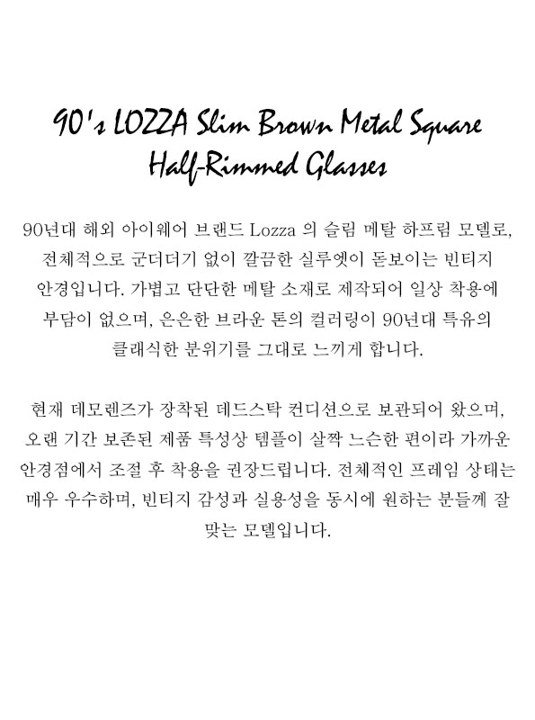 90's LOZZA Slim Brown Metal Square Half-Rimmed Glasses