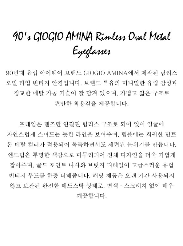 90's GIOGIO AMINA Rimless Oval Metal Eyeglasses