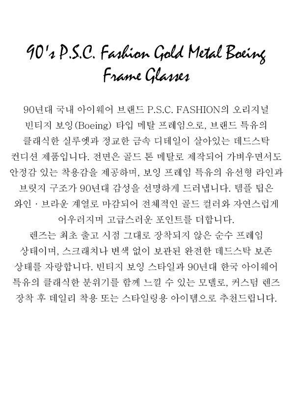 90's P.S.C. Fashion Gold Metal Boeing Frame Glasses