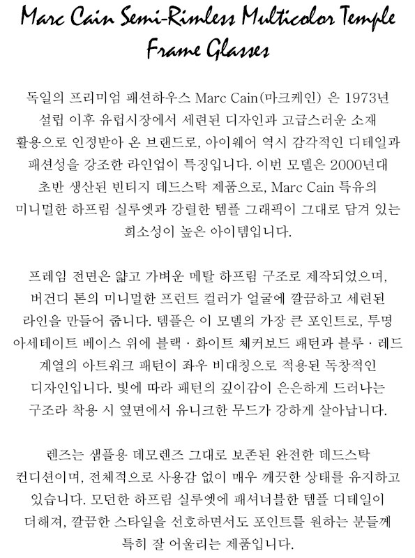 Marc Cain Semi-Rimless Multicolor Temple Frame Glasses