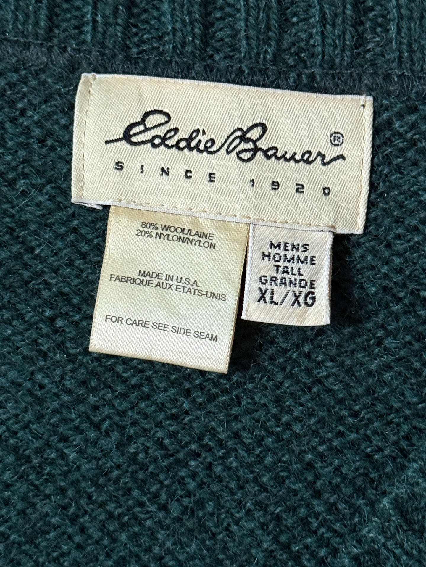 미국 생산(Made in U.S.A.) 라인으로, 당시 Eddie Bauer 특유의 고급스러운 울 퀄리티와 탄탄한 조직감을 느낄 수 있습니다. 전체적으로 사용감 적고 양호한 빈티지 컨디션을 유지하고 있습니다. 실측 105-110 정도 되는 사이즈입니다.