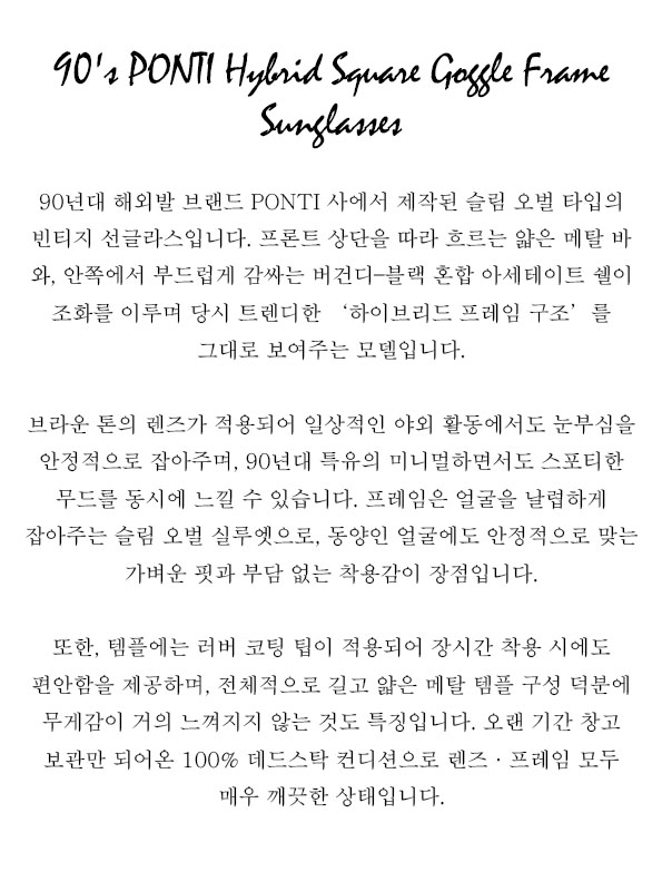 90's PONTI Hybrid Square Goggle Frame Sunglasses