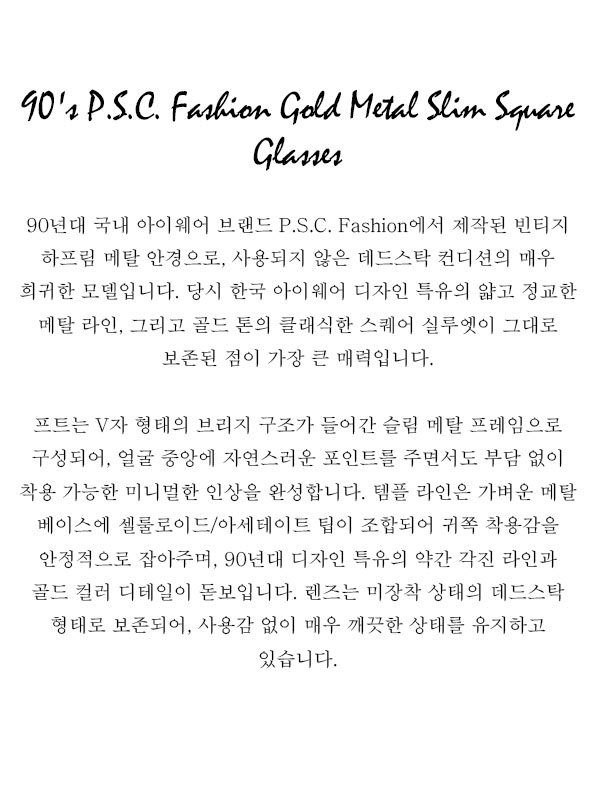 90's P.S.C. Fashion Gold Metal Slim Square Glasses