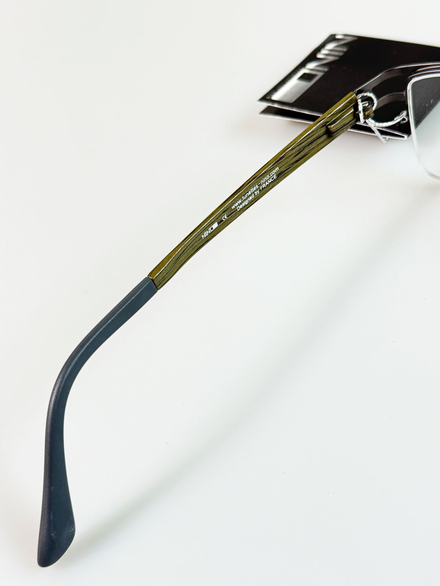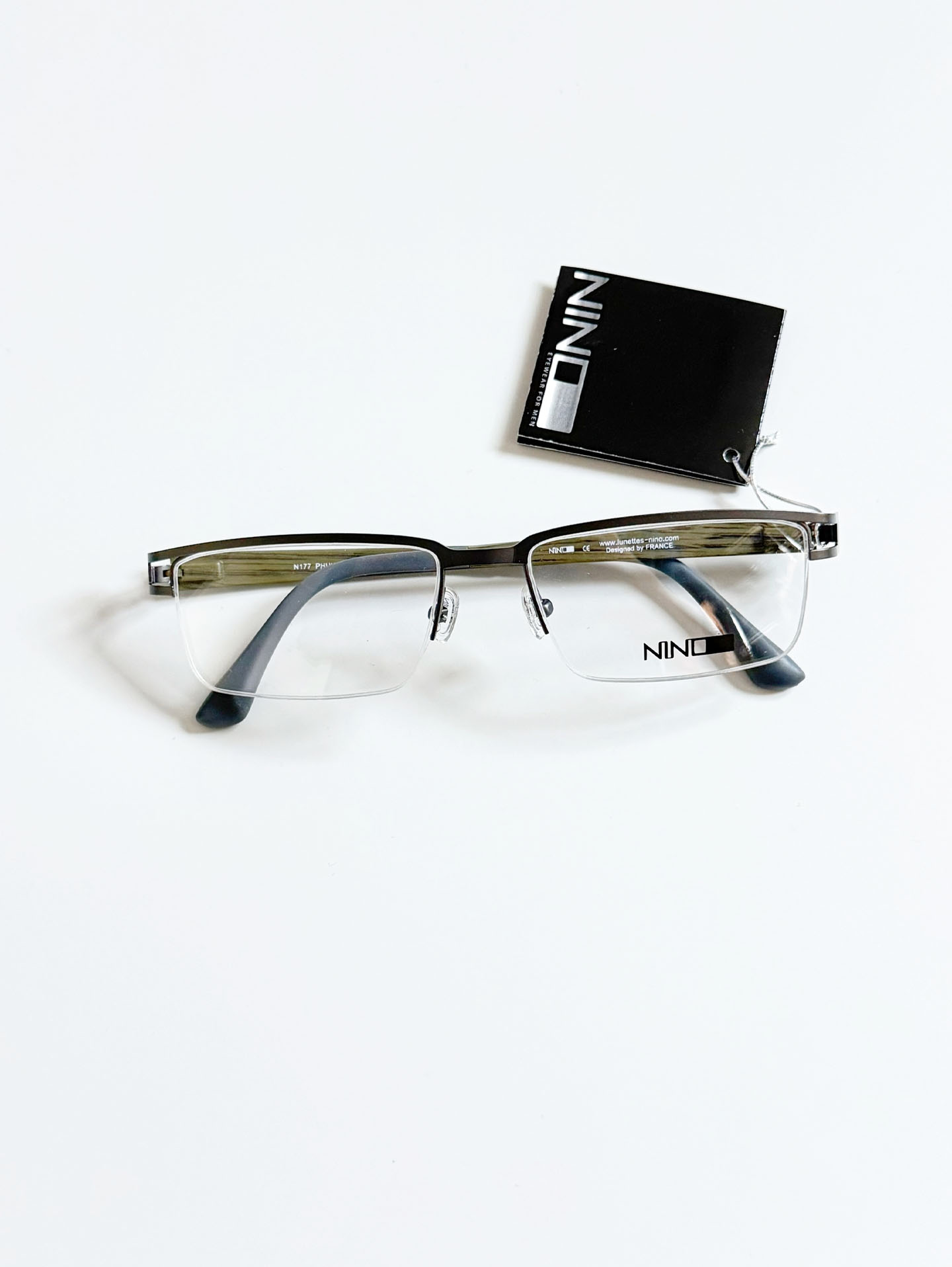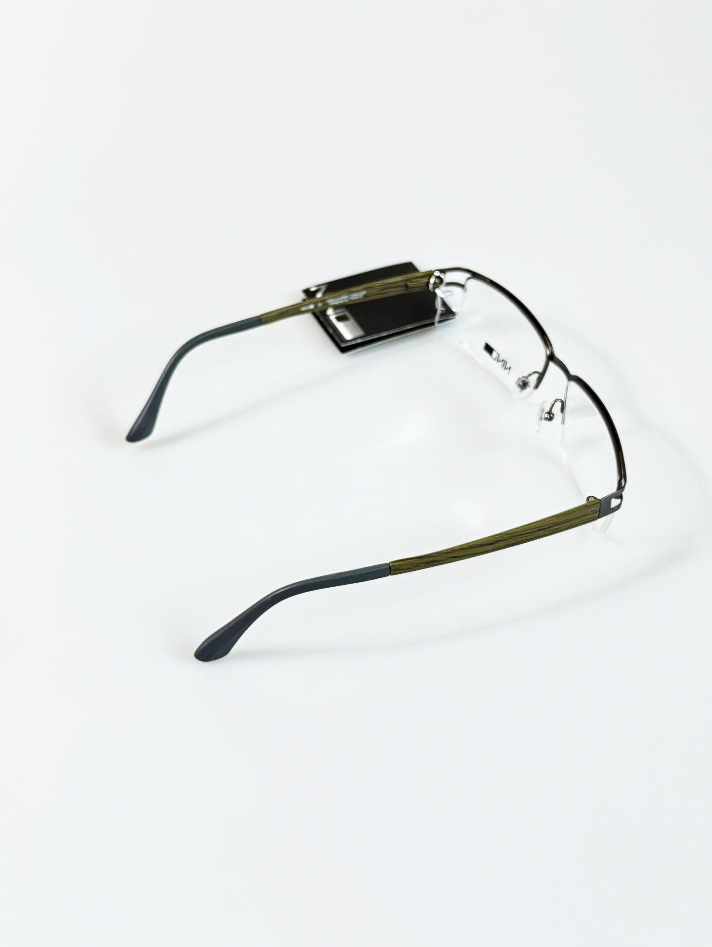NINO Eyewear Half-Rim Metal Frame with Wood-Texture Temples Glasses