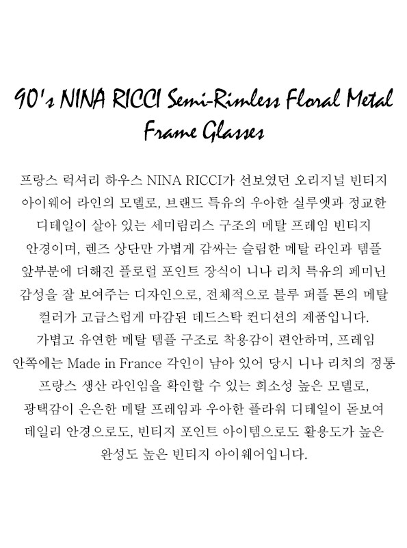 90's NINA RICCI Semi-Rimless Floral Metal Frame Glasses