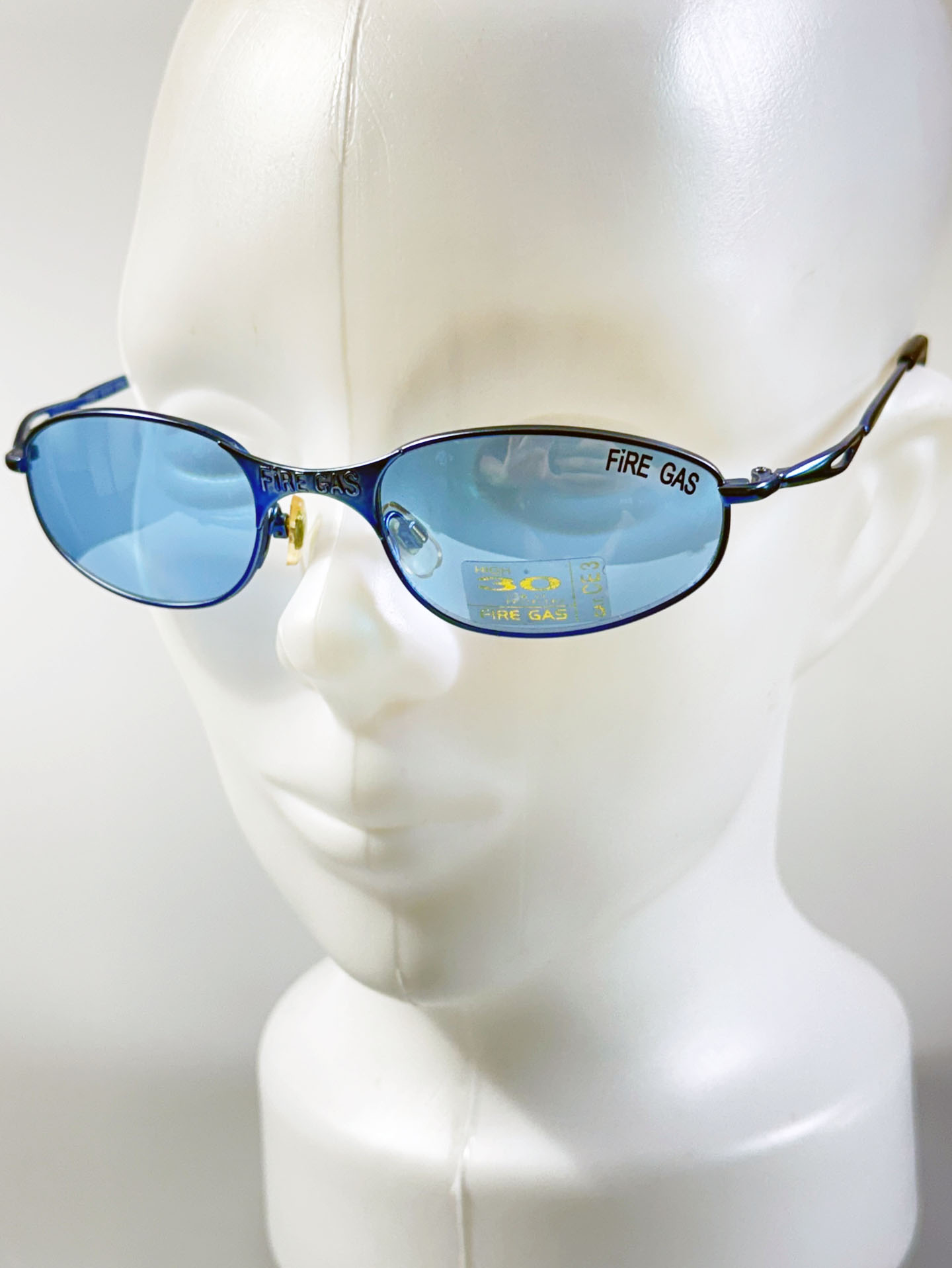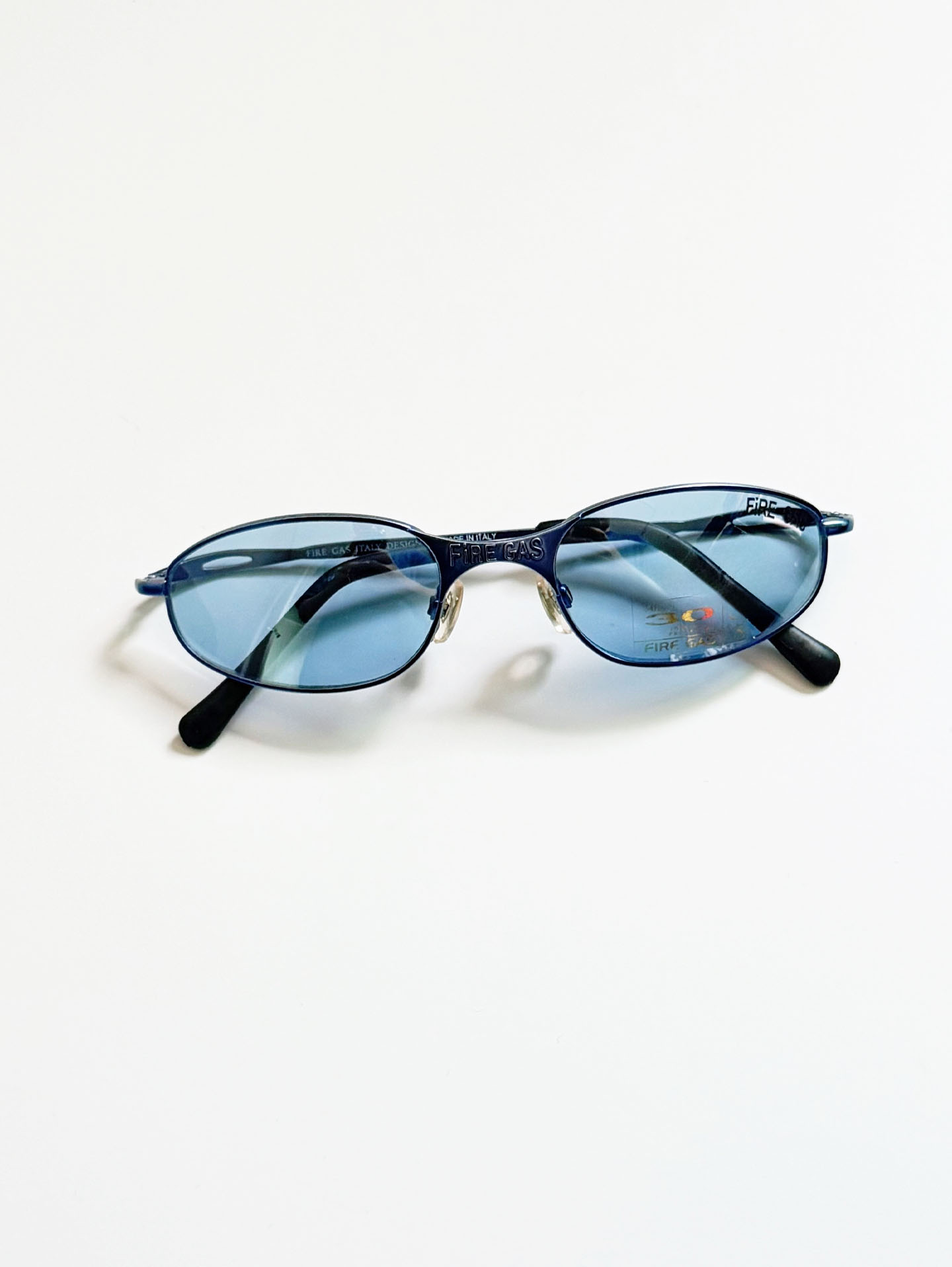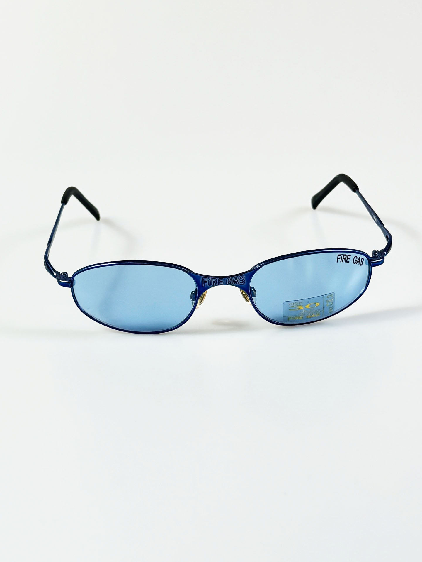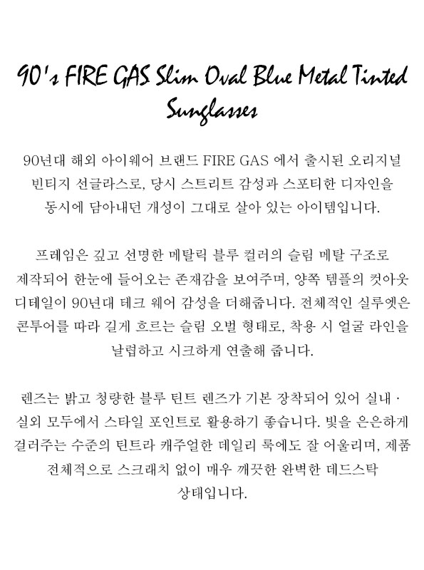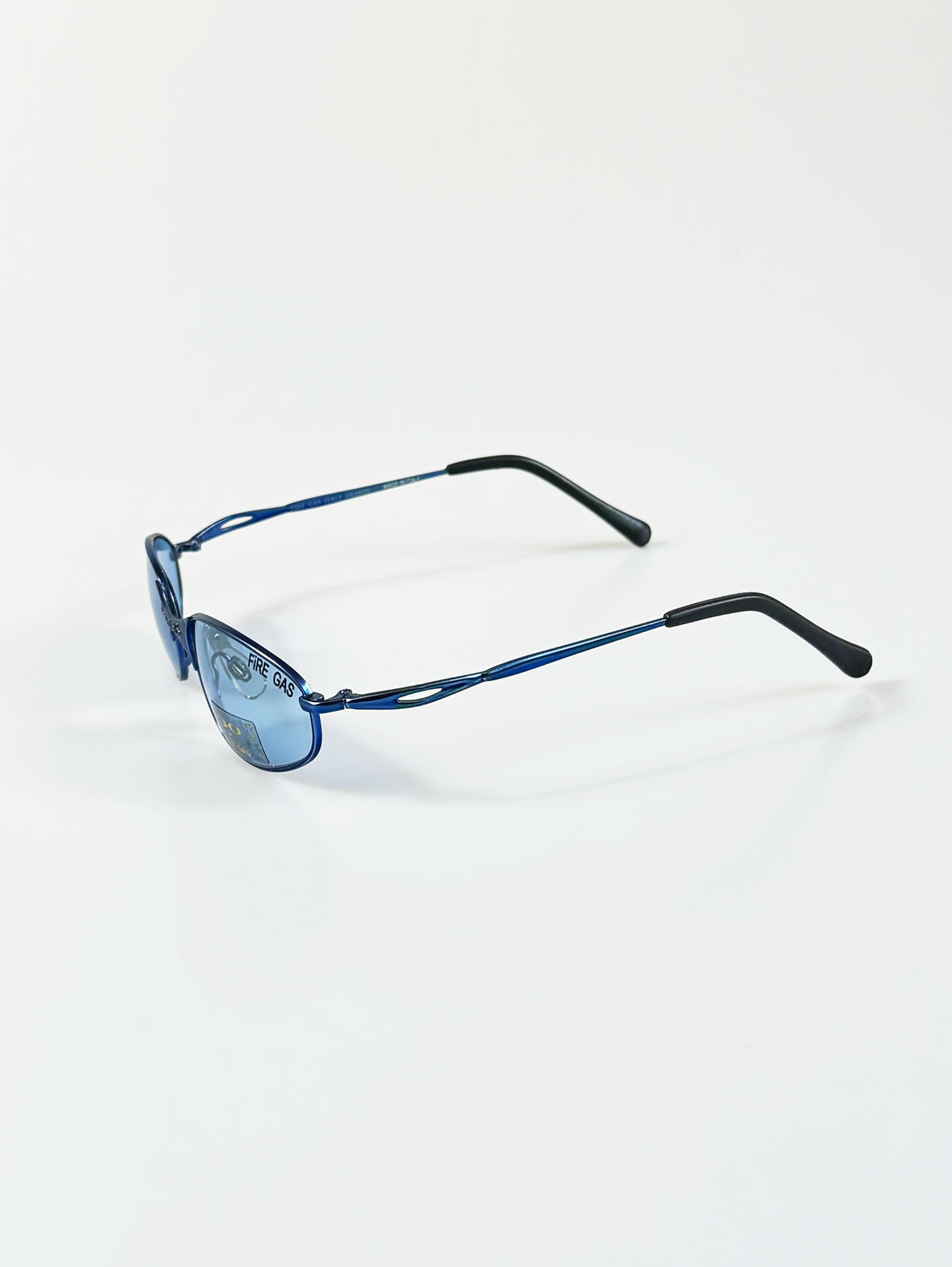 90's FIRE GAS Slim Oval Blue Metal Tinted Sunglasses