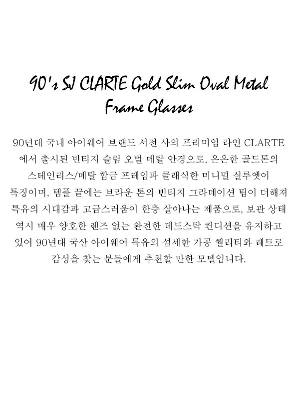 90's SJ CLARTE Gold Slim Oval Metal Frame Glasses