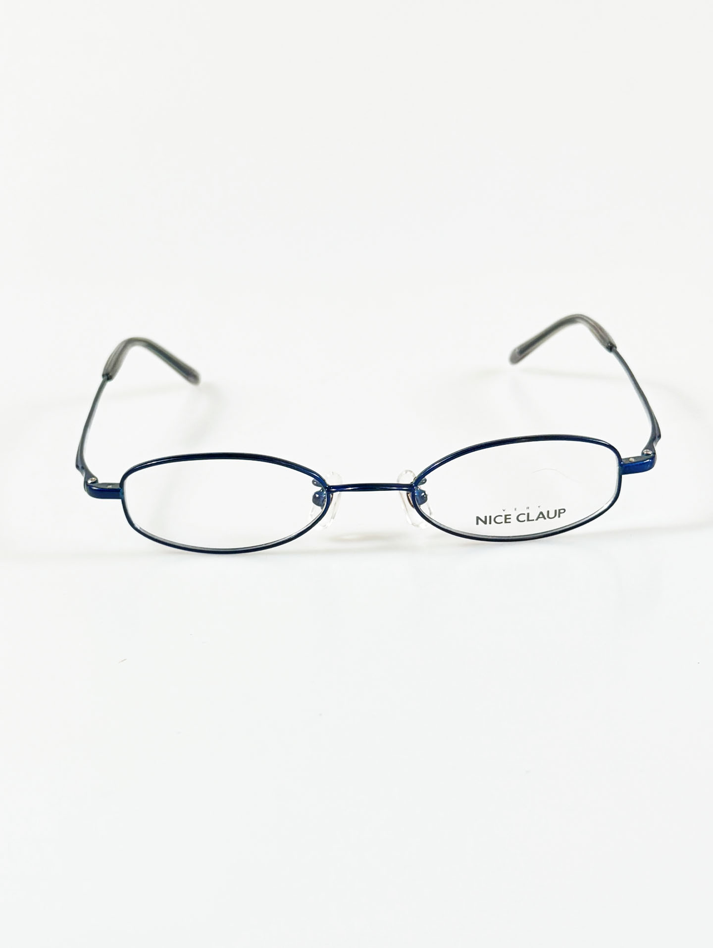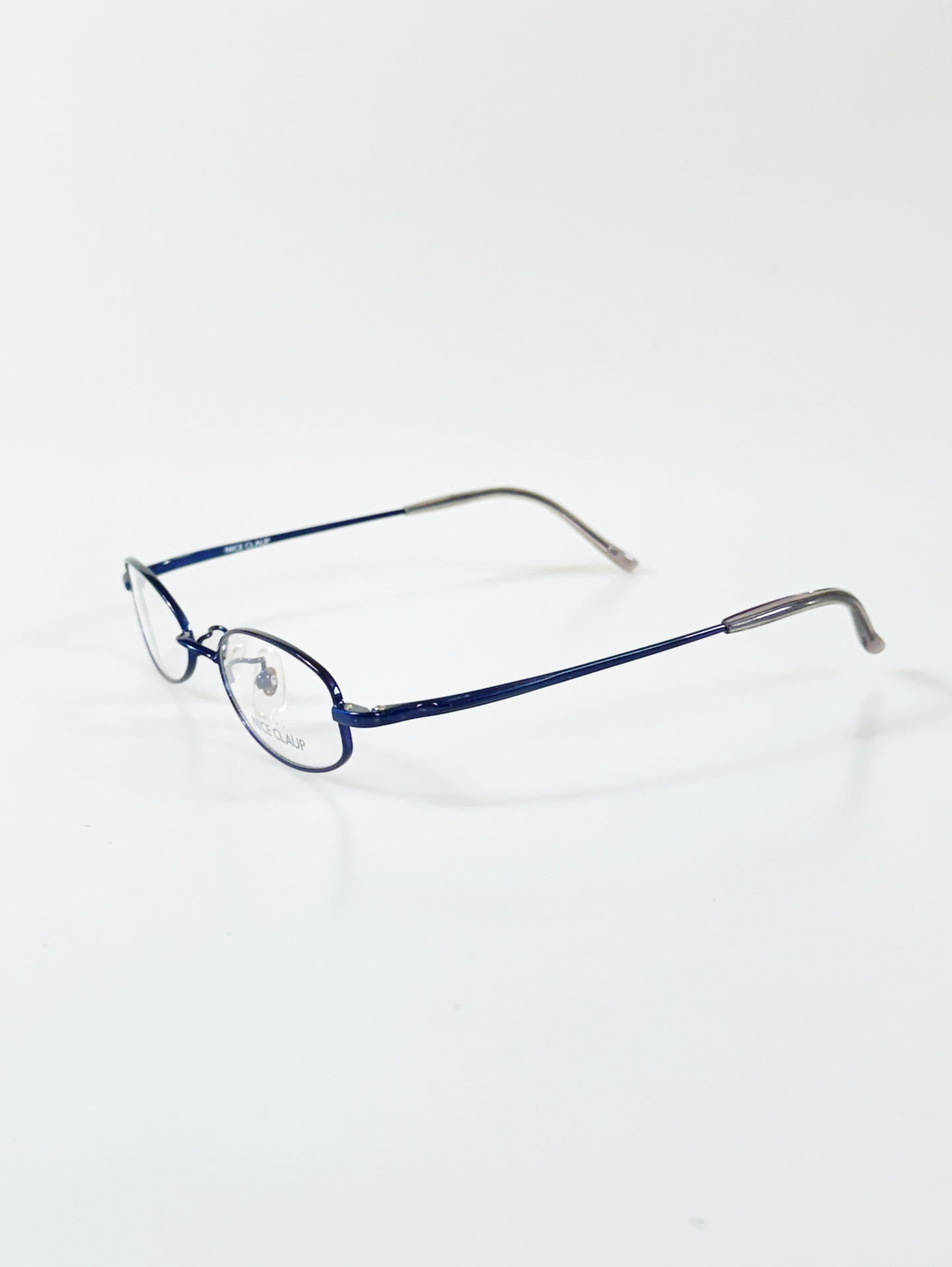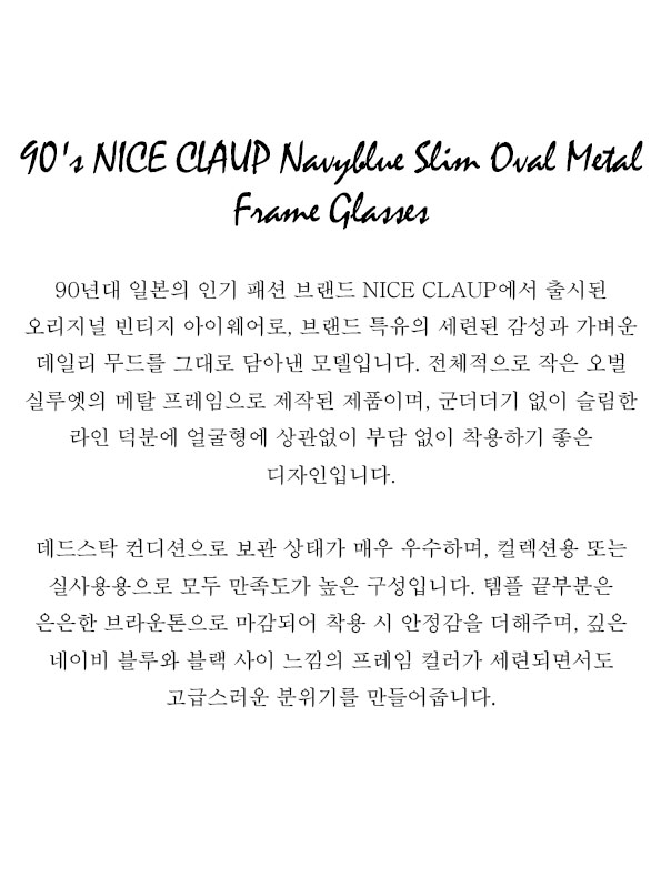 90's NICE CLAUP Navyblue Slim Oval Metal Frame Glasses