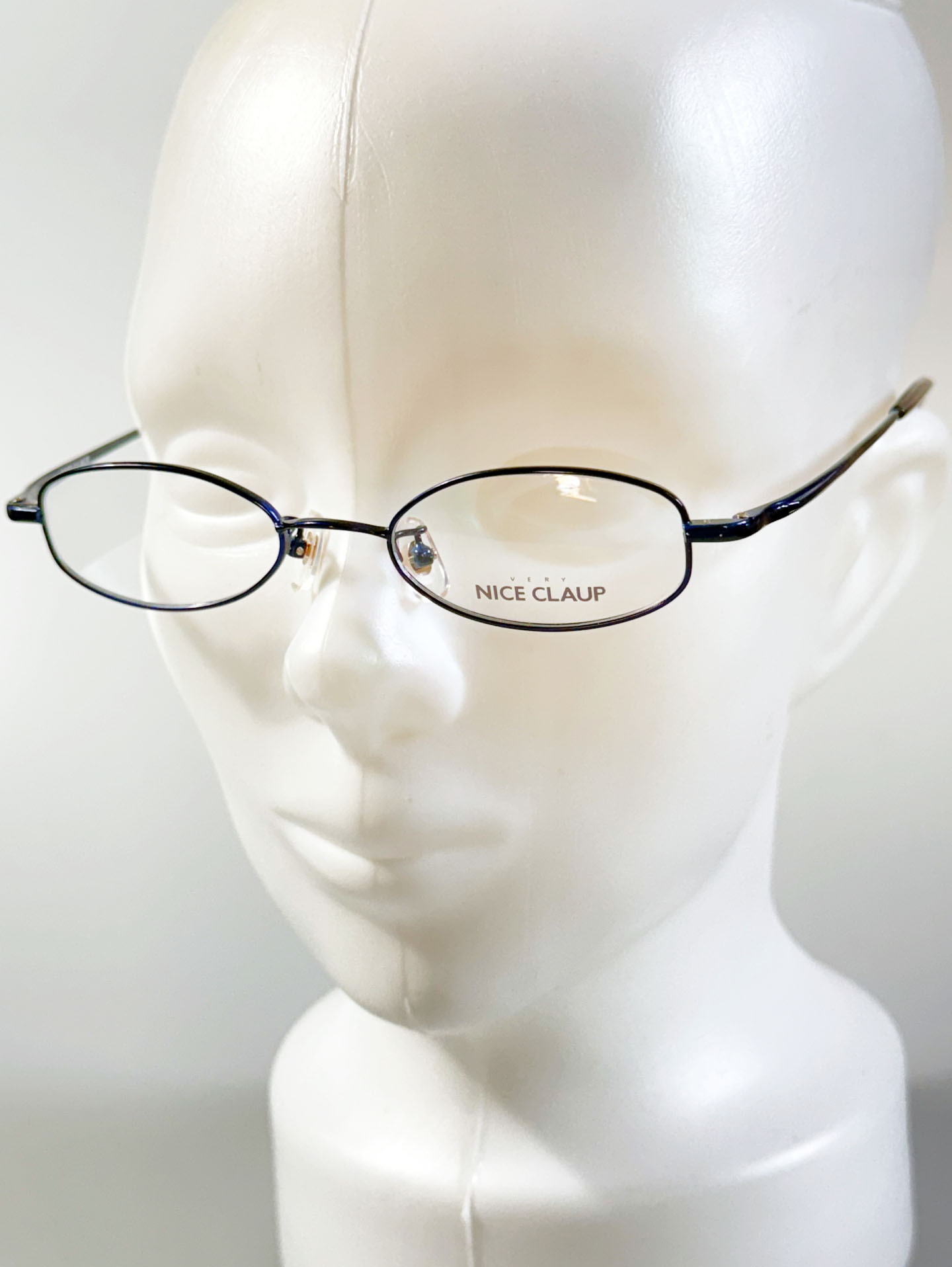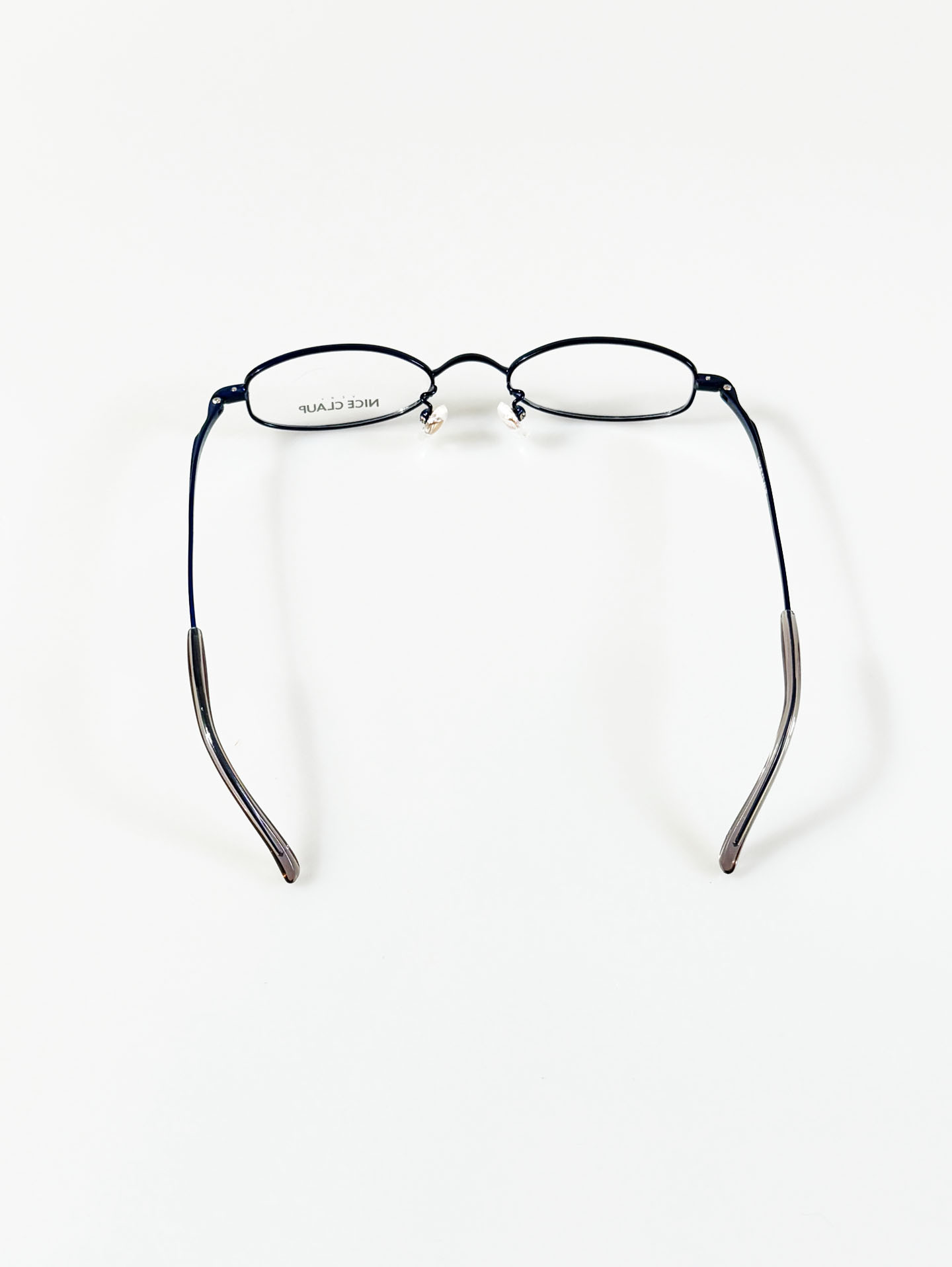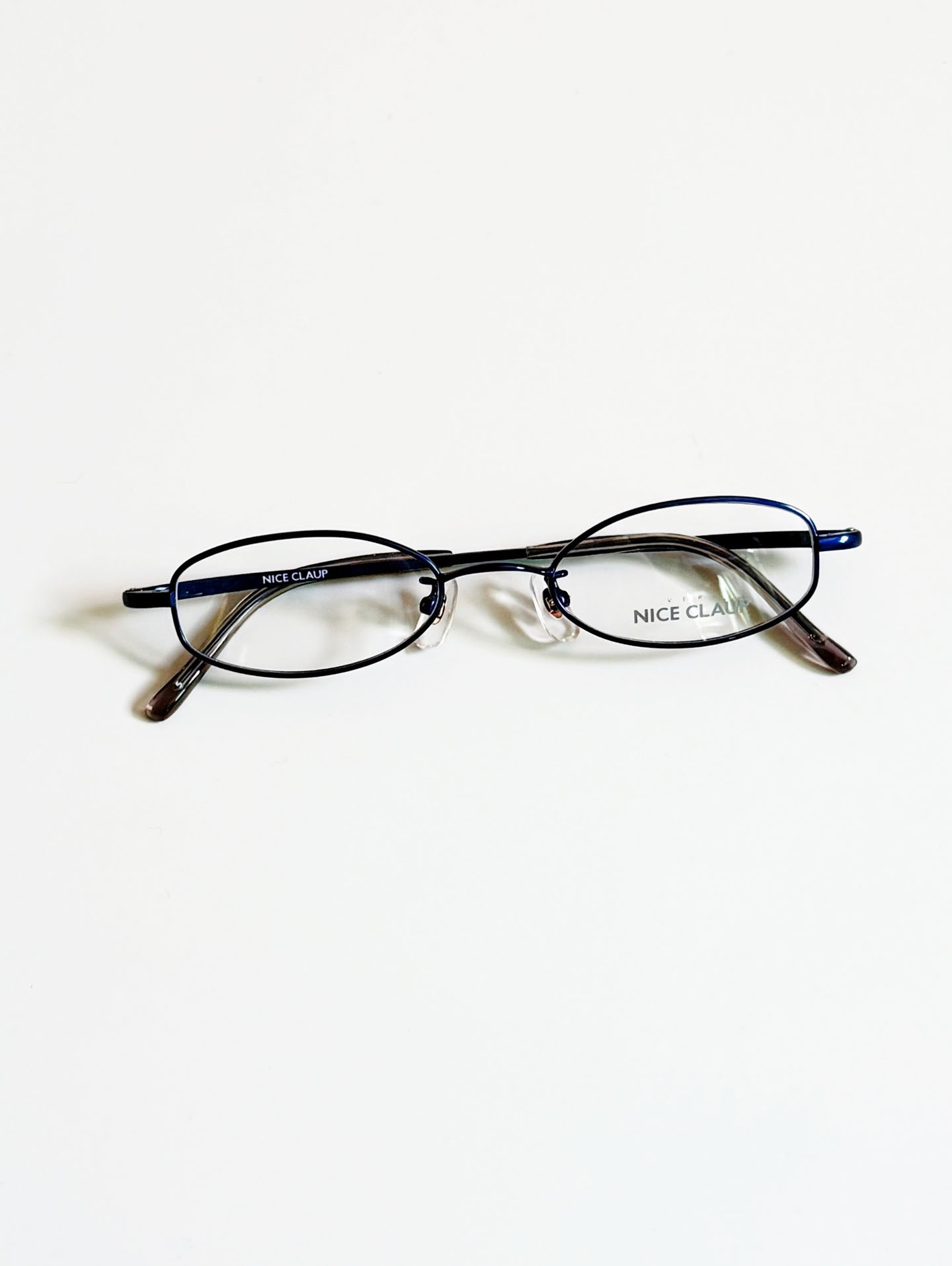 90's NICE CLAUP Navyblue Slim Oval Metal Frame Glasses