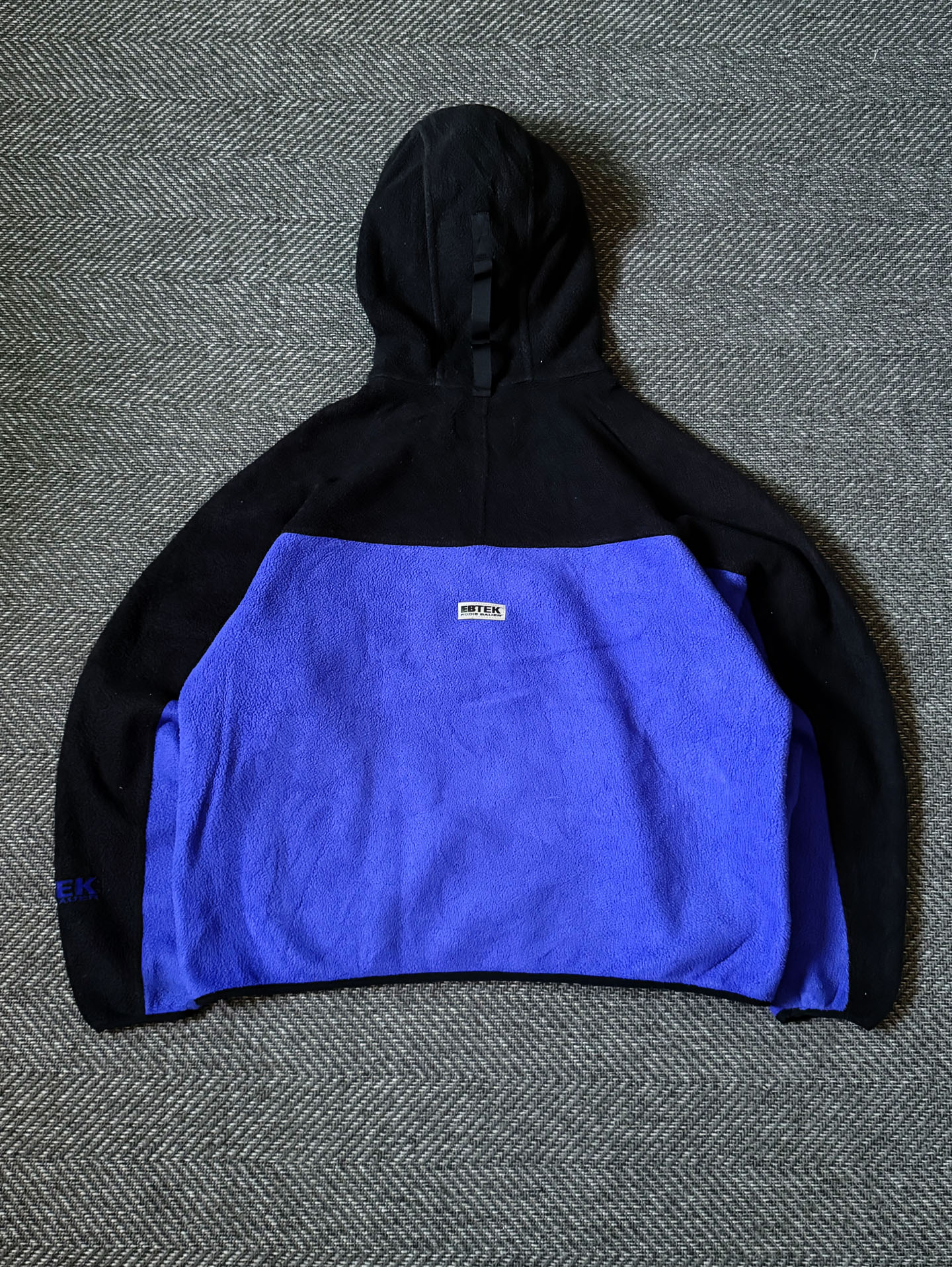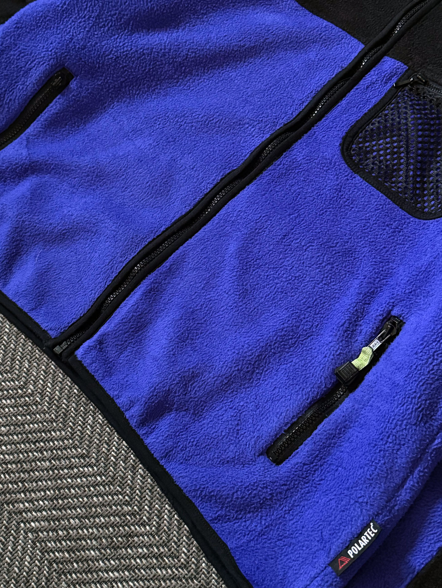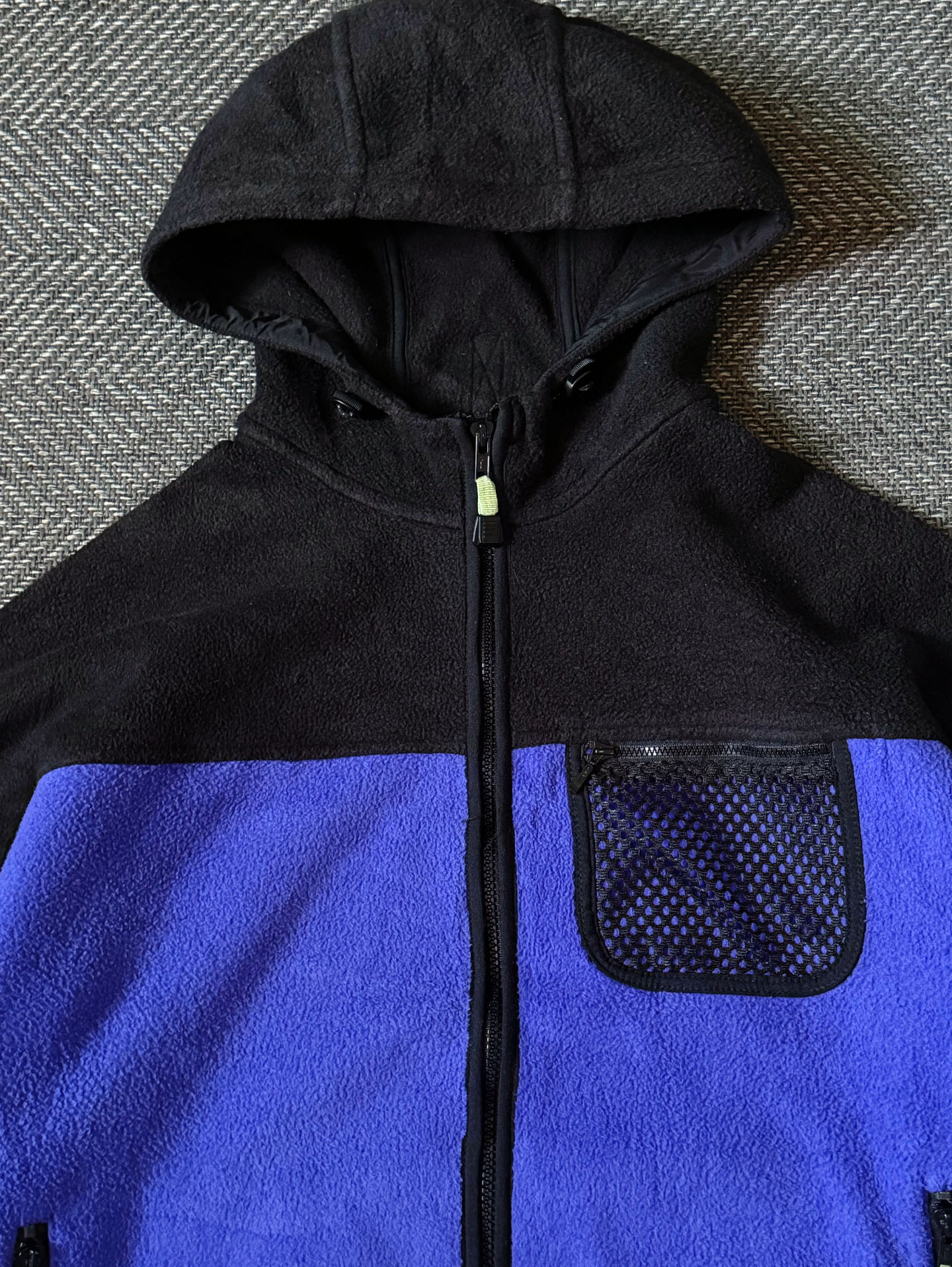이번 제품은 90년대 후반 생산분으로 추정되며, 상단은 블랙, 하단은 퍼플 폴라텍 소재가 적용된 투톤 디자인이 매력 포인트입니다. 전면에는 메쉬 지퍼 포켓, 양측 지퍼 핸드 포켓, 소매의 EBTEK 자수, 지퍼 팁의 포인트 디테일까지 완전한 오리지널 감성을 보여줍니다.