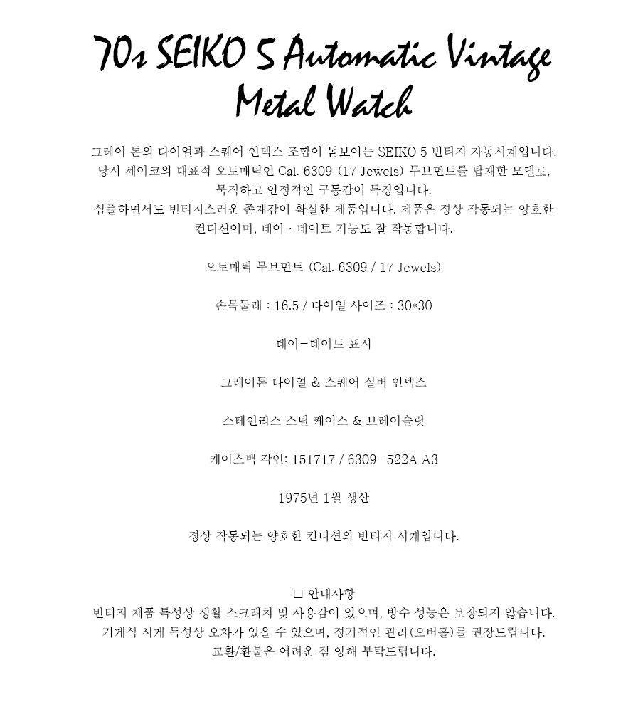 70s SEIKO 5 Automatic Vintage Metal Watch