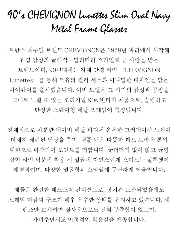 90's CHEVIGNON Lunettes Slim Oval Navy Metal Frame Glasses