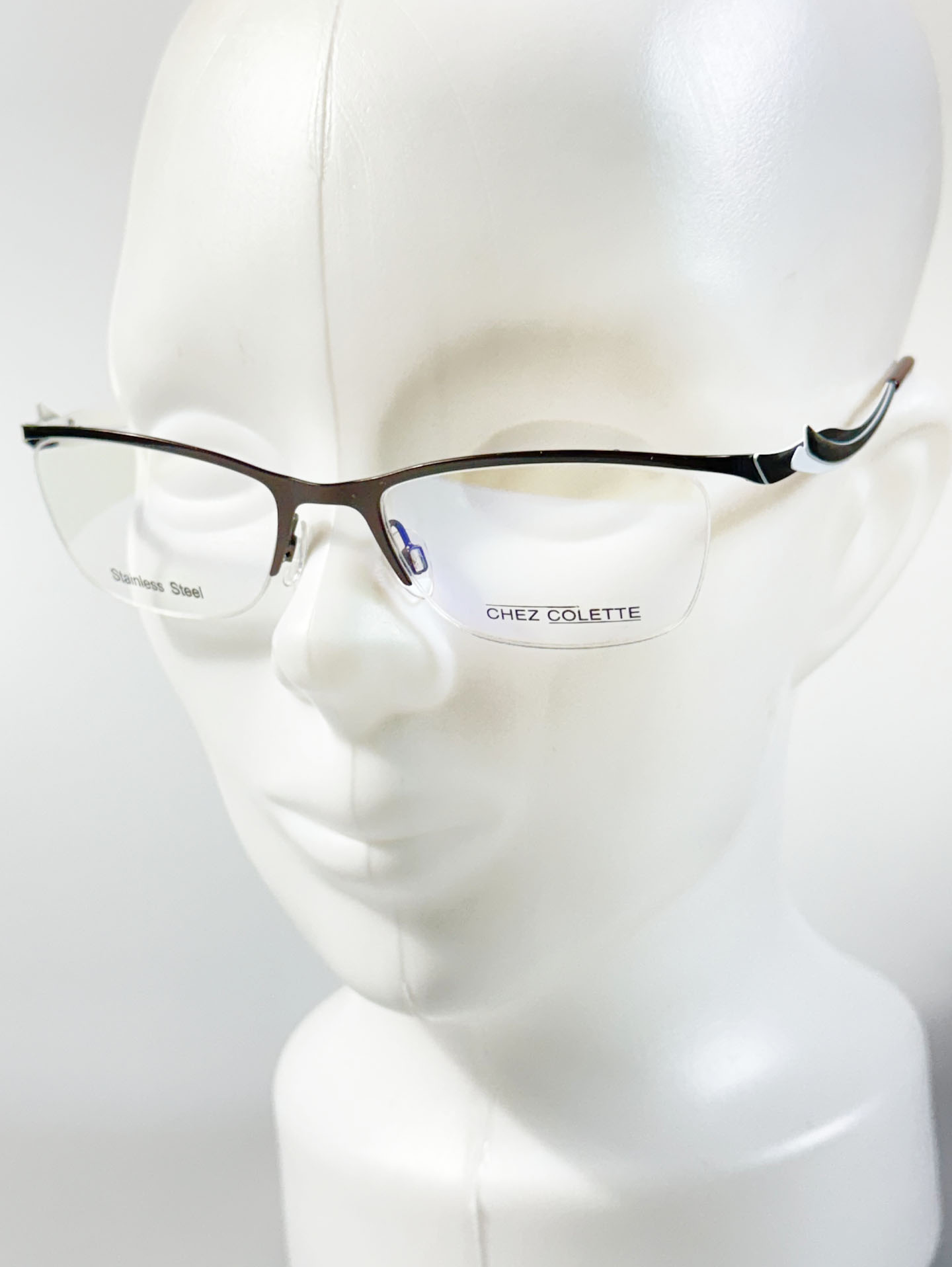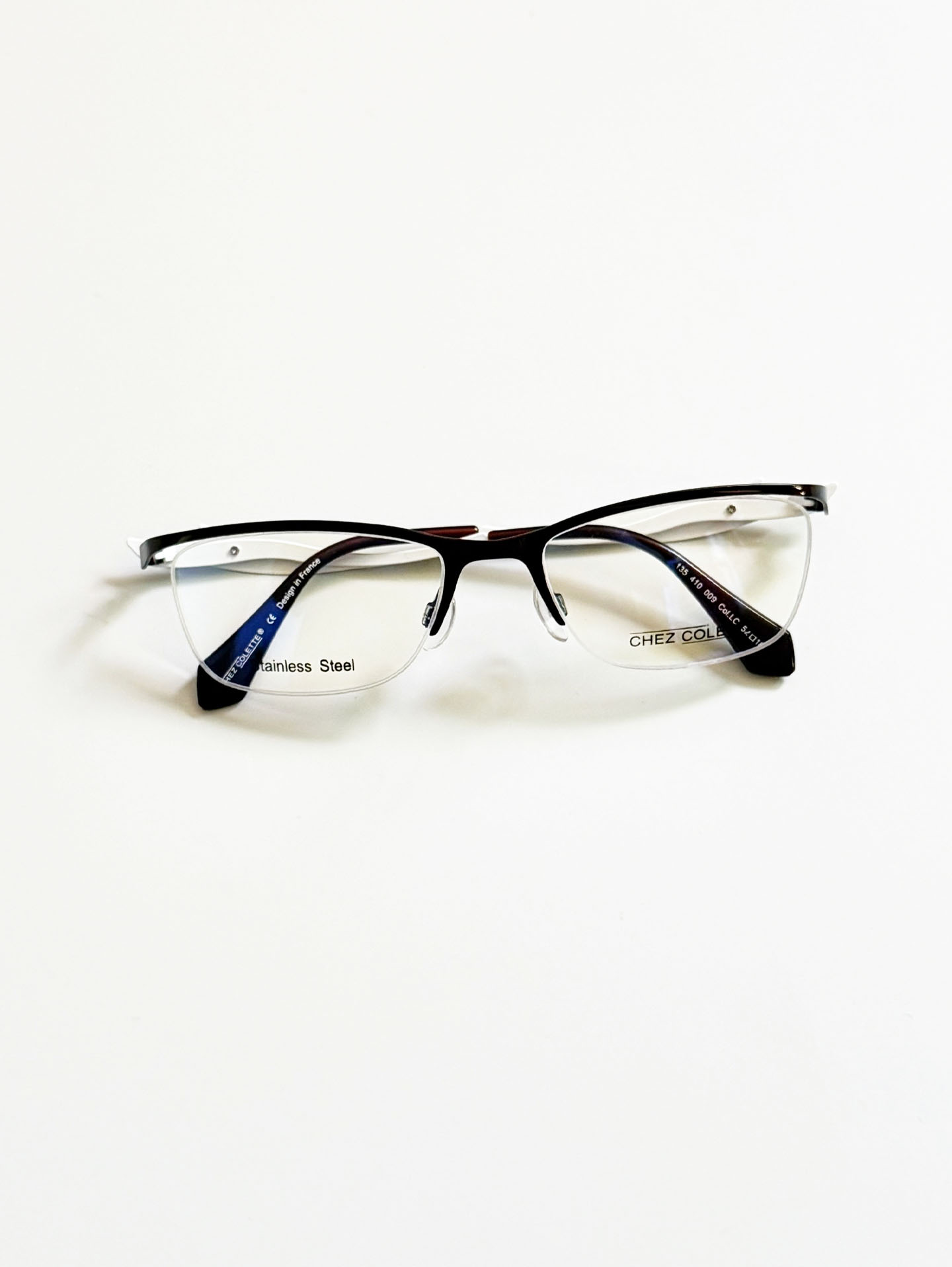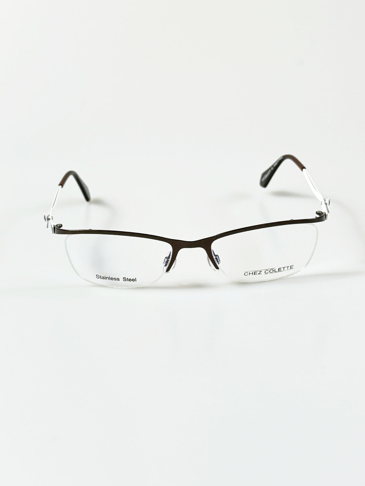 CHEZ COLETTE Square Metal Half-Rim Frame Glasses