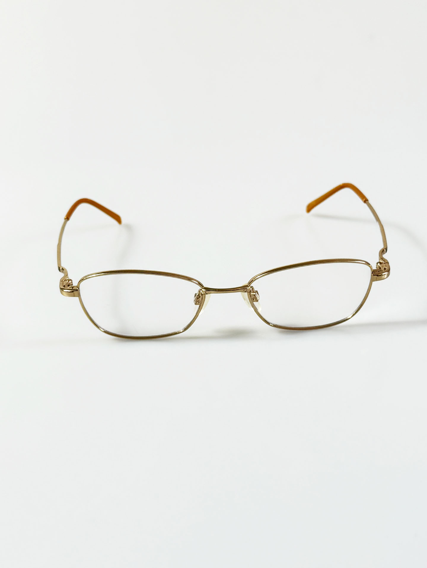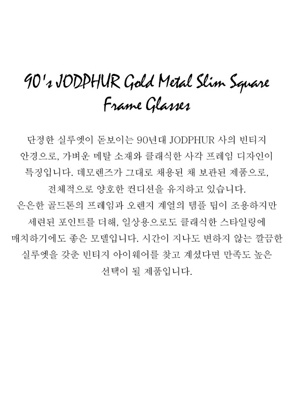 90's JODPHUR Gold Metal Slim Square Frame Glasses