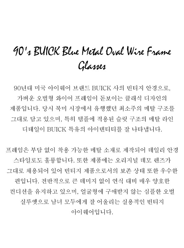 90's BUICK Blue Metal Oval Wire Frame Glasses