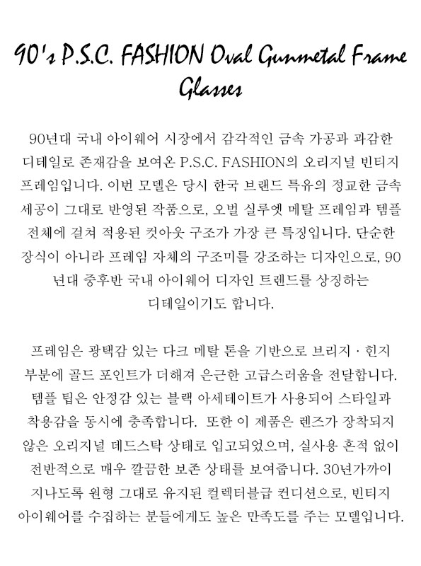90's P.S.C. FASHION Oval Gunmetal Frame Glasses