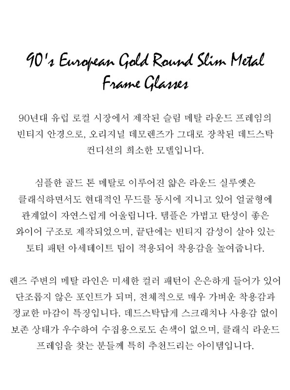90's European Gold Round Slim Metal Frame Glasses