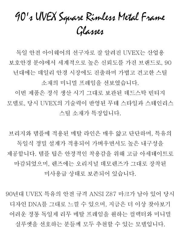 90's UVEX Square Rimless Metal Frame Glasses