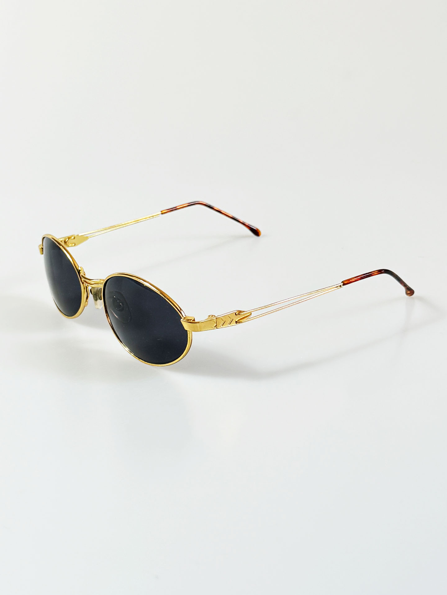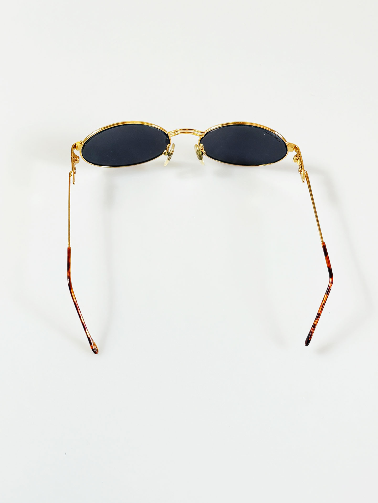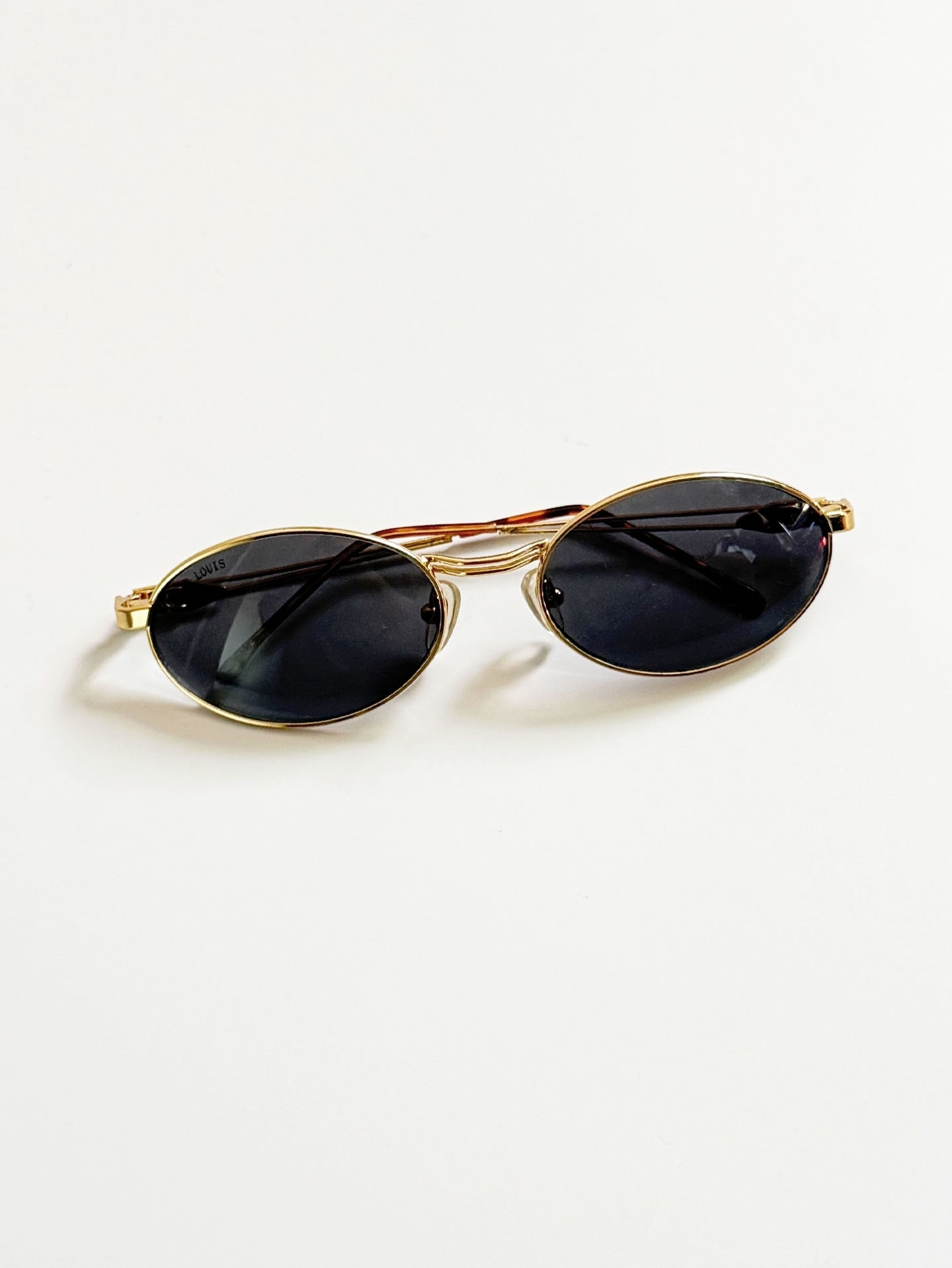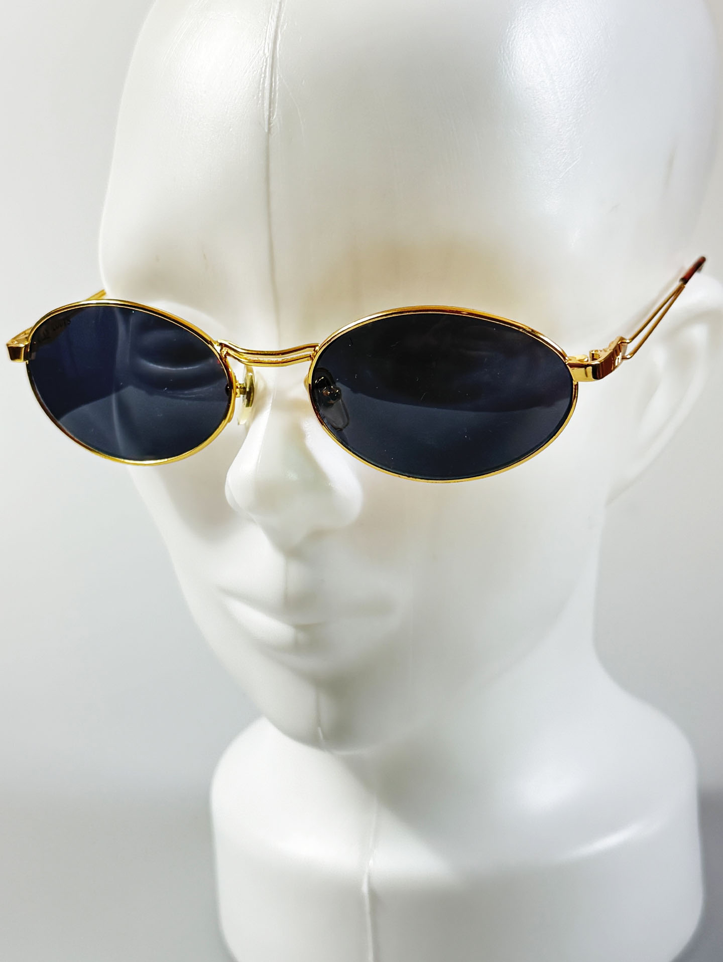 90's Alan Louis Gold Oval Metal Frame Sunglasses