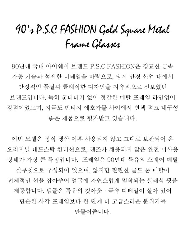 90's P.S.C FASHION Gold Square Metal Frame Glasses