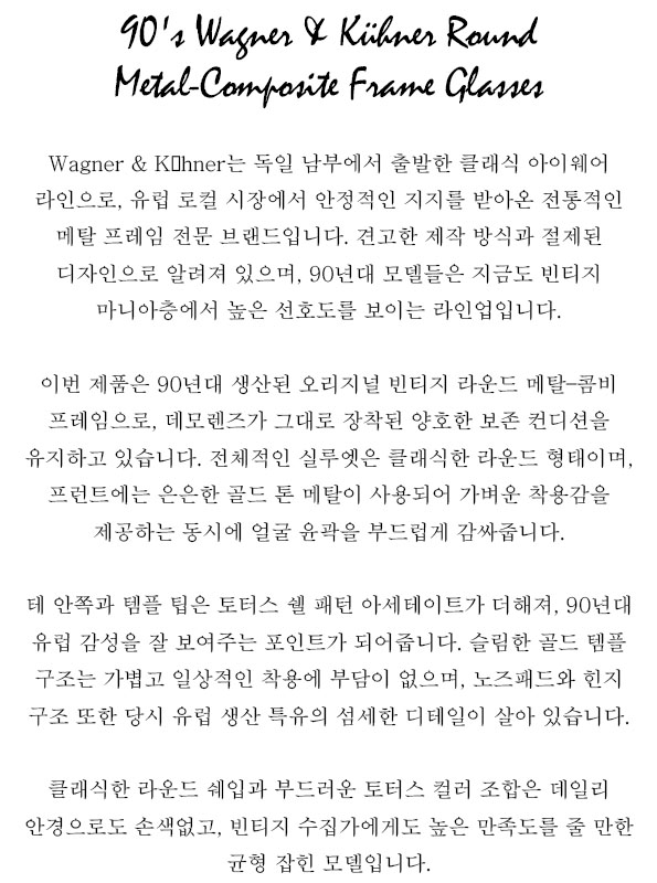 90's Wagner & Kühner Round Metal-Composite Frame Glasses