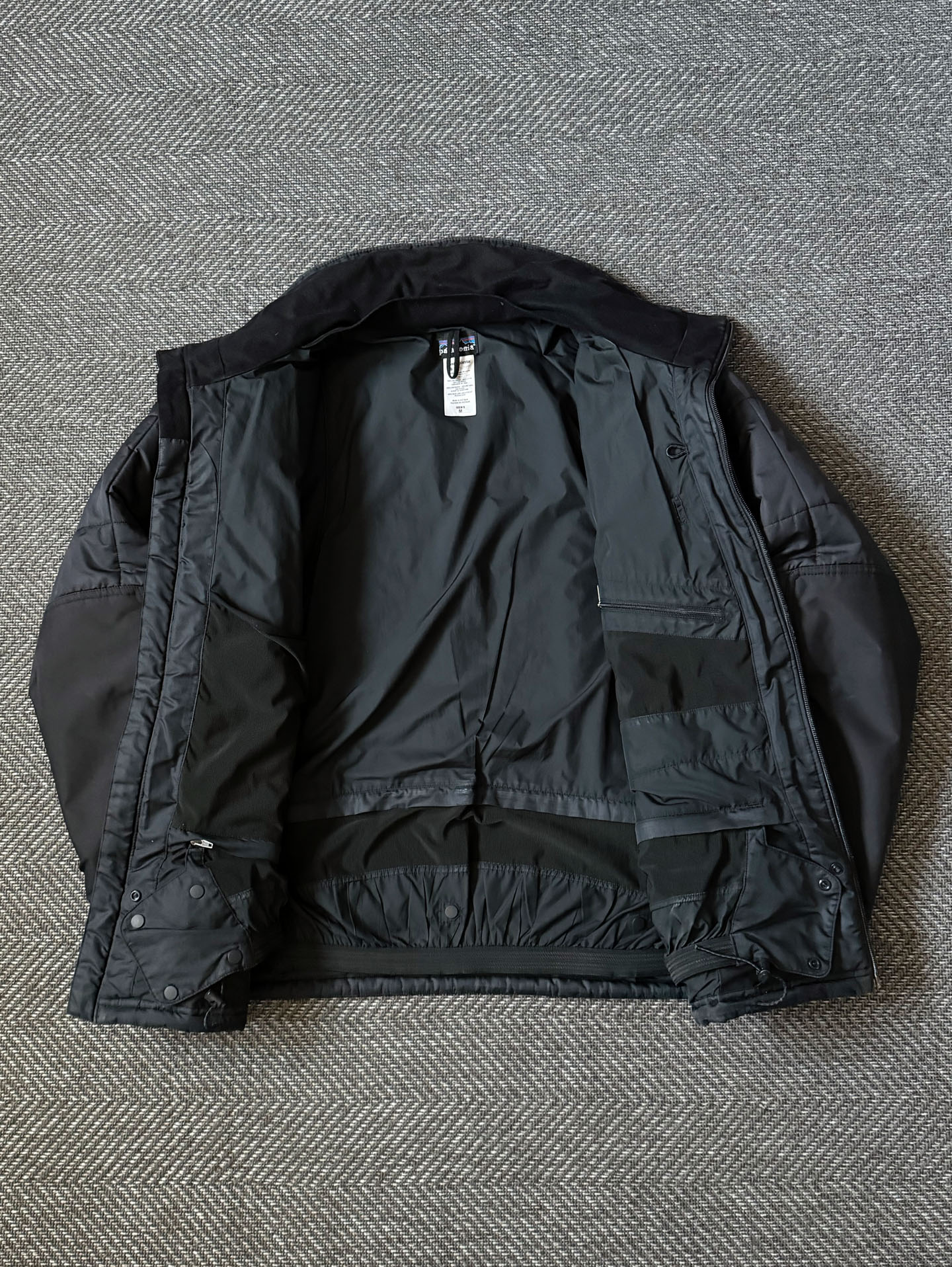 사진상 확인되는 사용감은 전반적으로 존재하나, 이는 빈티지 제품 특유의 자연스러운 에이징 수준으로 착용에 지장을 주는 큰 하자는 없습니다. 소매 끝과 일부 디테일에서 사용 흔적이 보이나 전체적인 컨디션은 안정적인 편이며, 원단과 충전재의 기능성은 여전히 잘 유지되어 있습니다. 단정한 블랙 컬러 베이스에 파타고니아 특유의 클래식 로고가 더해져, 유행을 타지 않고 오래 즐기기 좋은 아이템입니다. 현재 기준으로 동일 모델을 좋은 컨디션으로 만나기 점점 어려워지고 있는 만큼, 2000년대 파타고니아 빈티지를 데일리 아우터로 즐기고 싶은 분들께 추천드리는 매물입니다. 표기사이즈 M, 실측 105정도 되는 사이즈입니다.