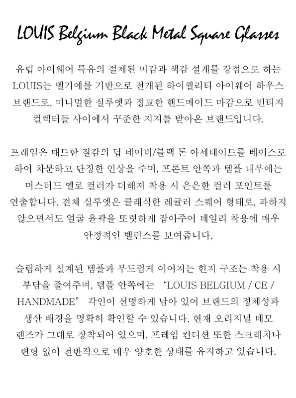 LOUIS Belgium Black Metal Square Glasses
