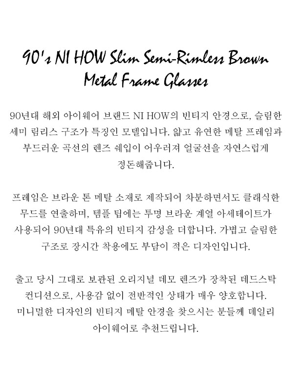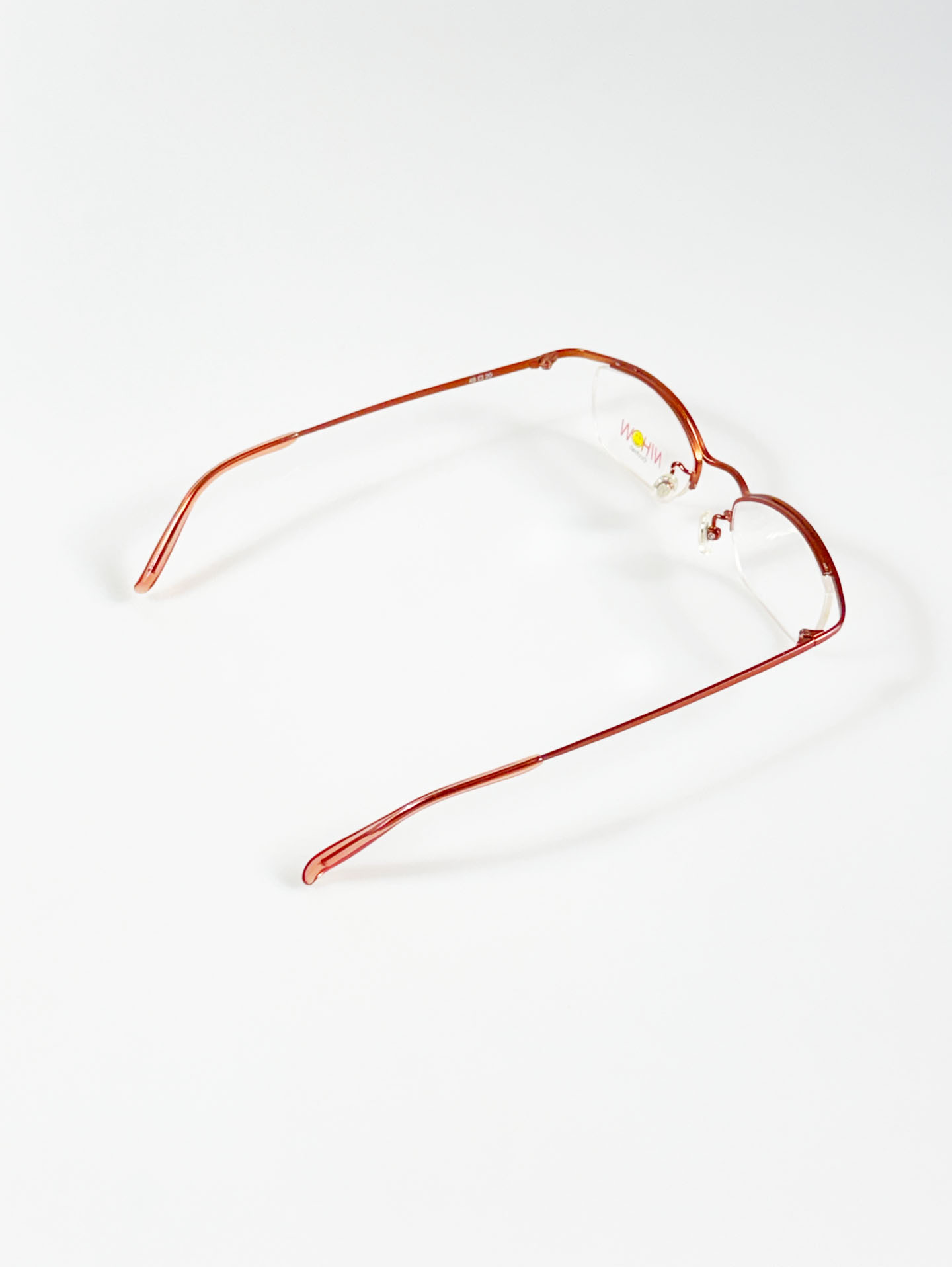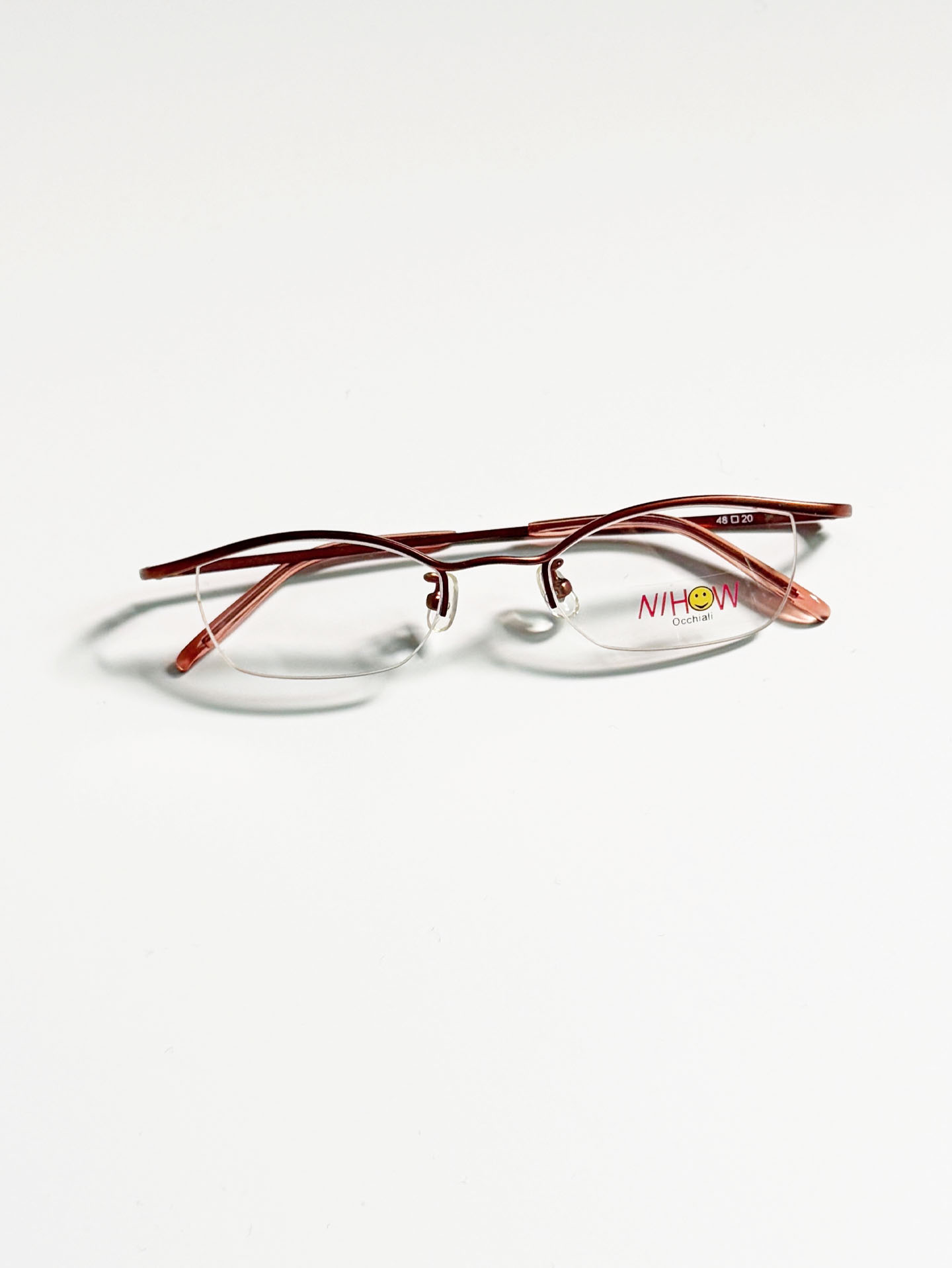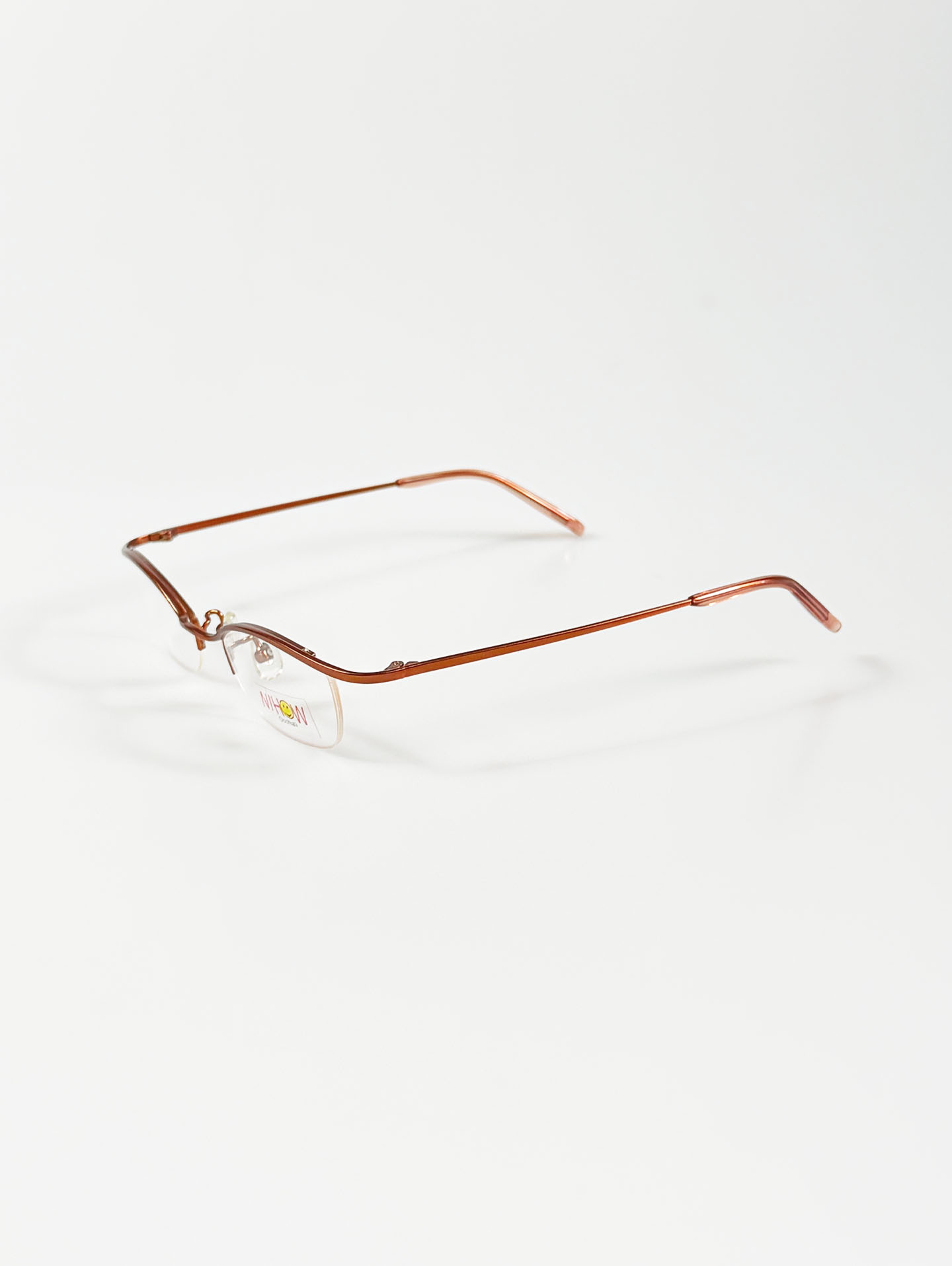 90's NI HOW Slim Semi-Rimless Brown Metal Frame Glasses
