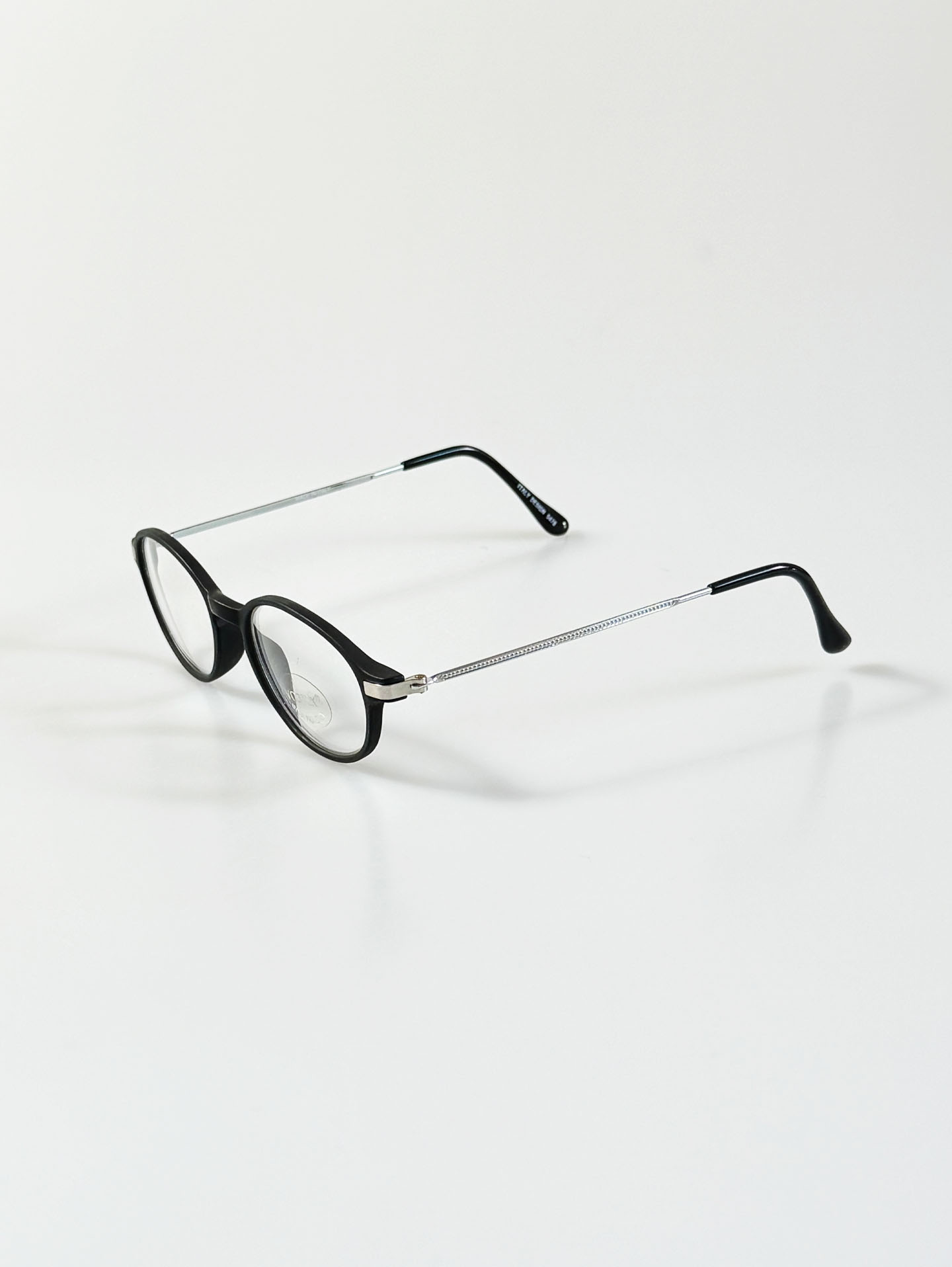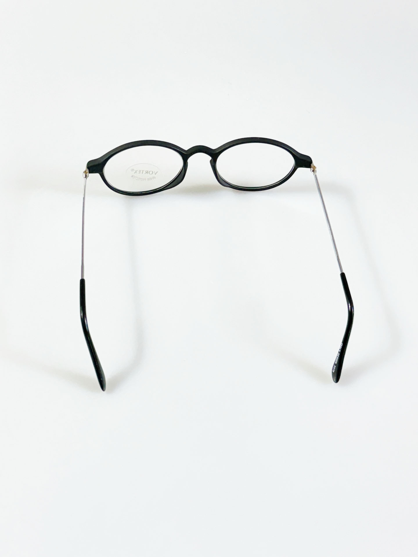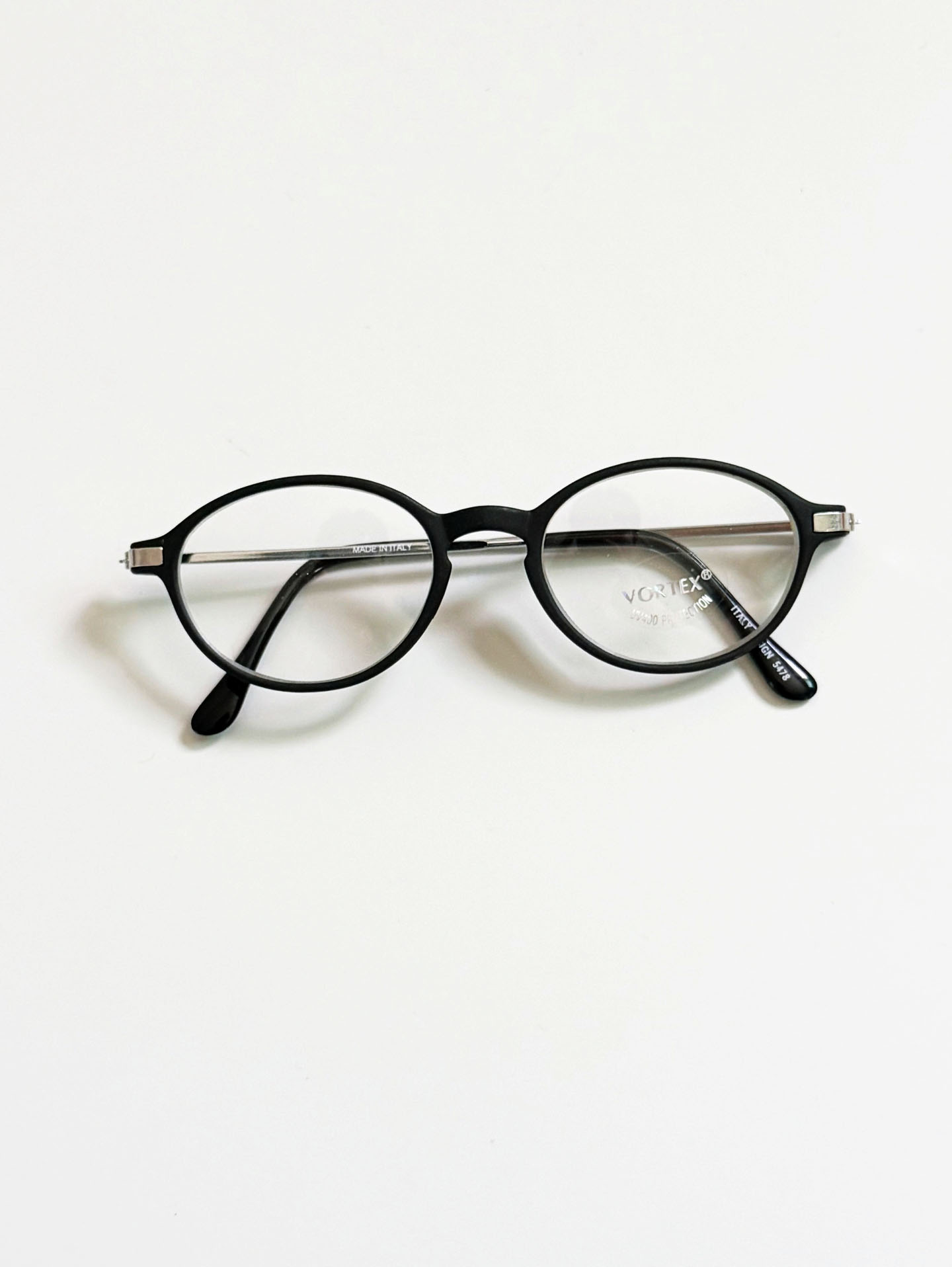 90's VORTEX Black Silver Oval Horn-Rimmed Frame Glasses