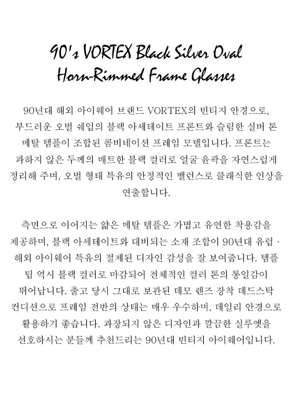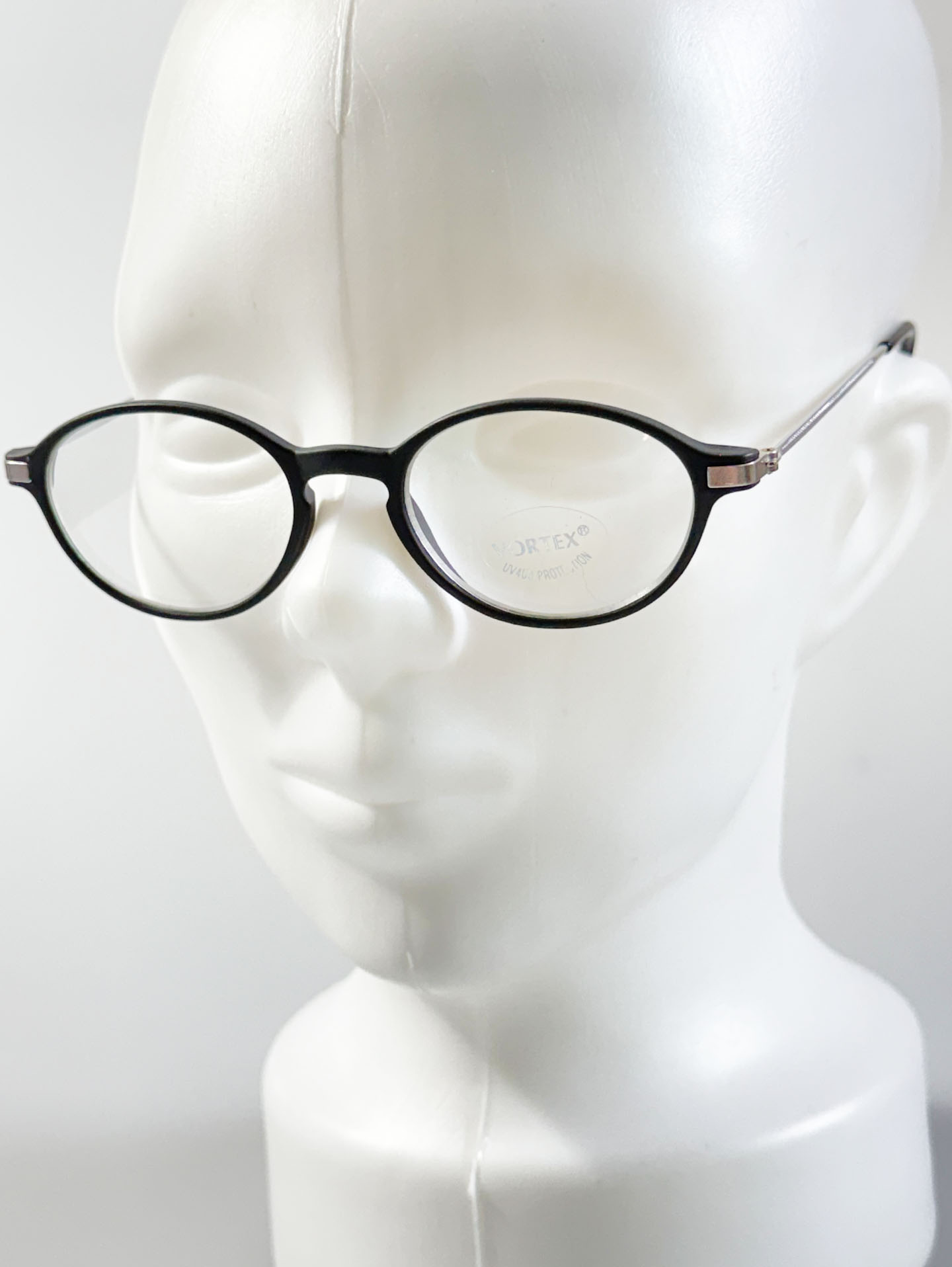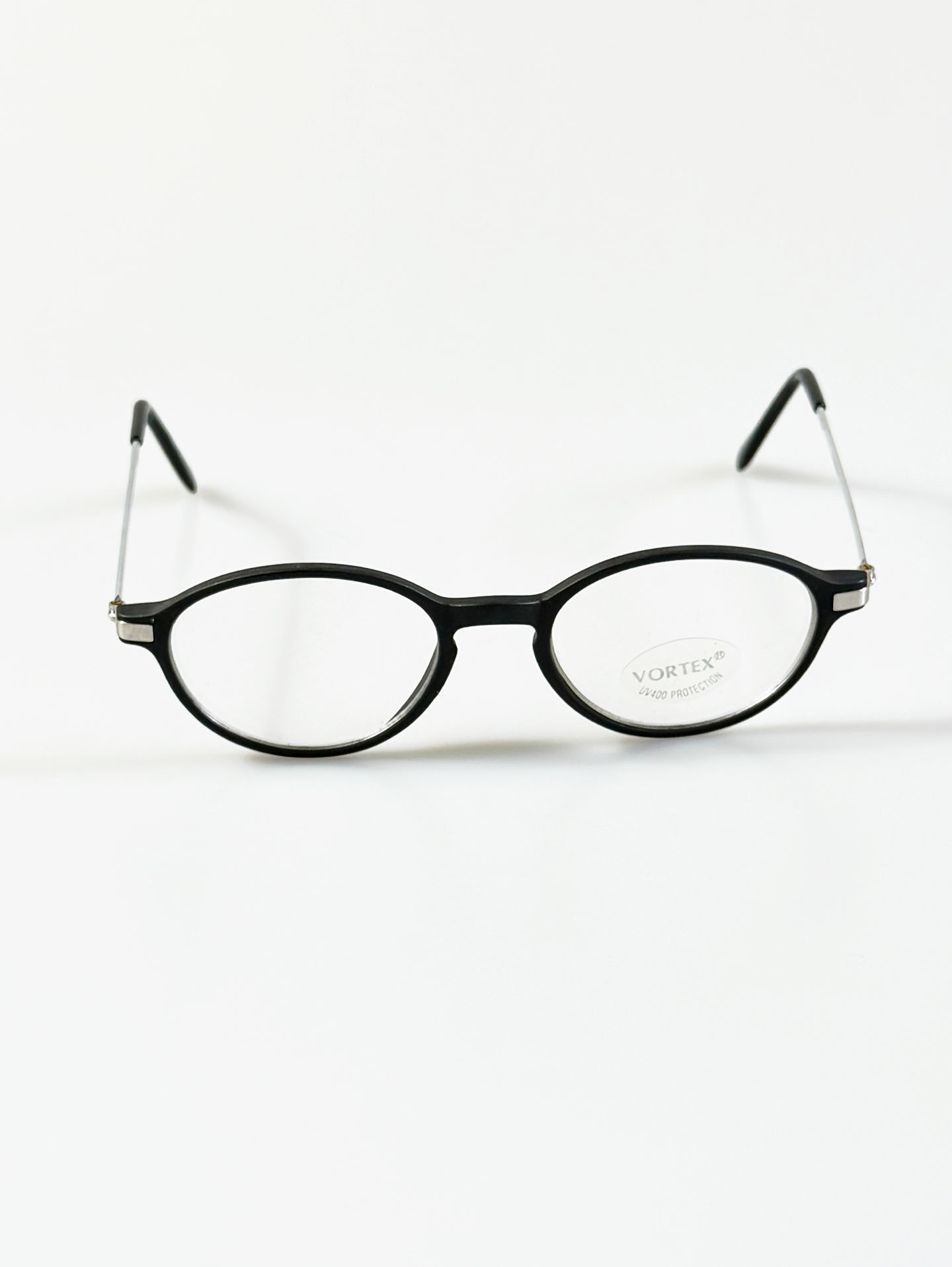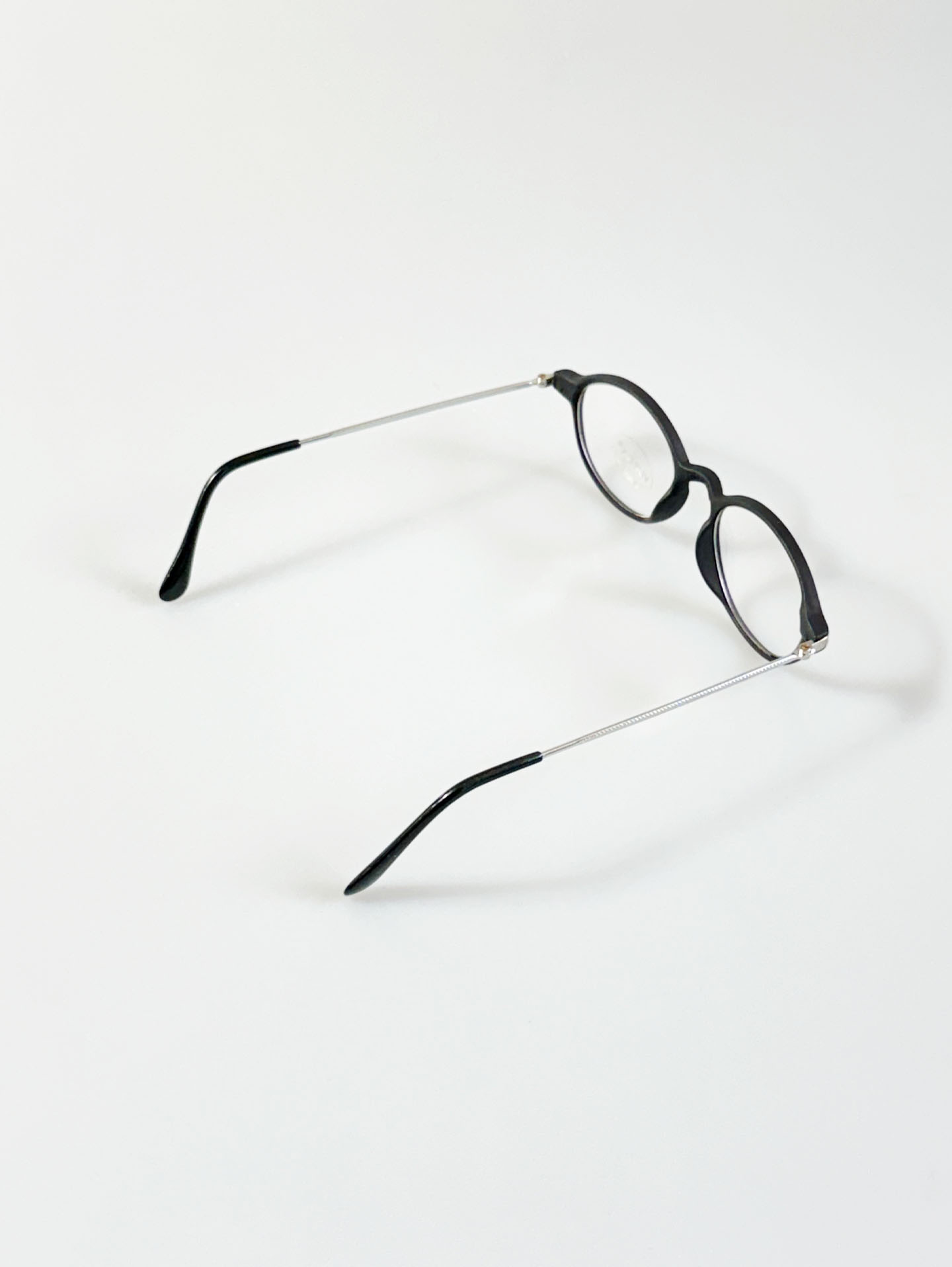 90's VORTEX Black Silver Oval Horn-Rimmed Frame Glasses