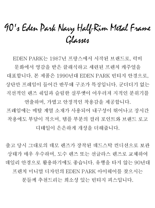 90's Eden Park Navy Half-Rim Metal Frame Glasses