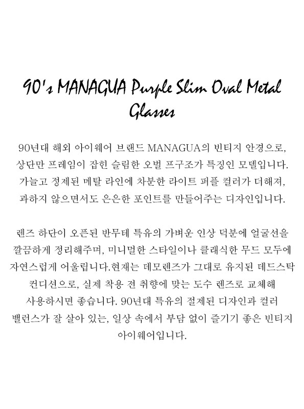 90's MANAGUA Purple Slim Oval Metal Glasses