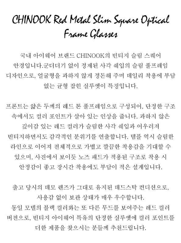 CHINOOK Red Metal Slim Square Optical Frame Glasses