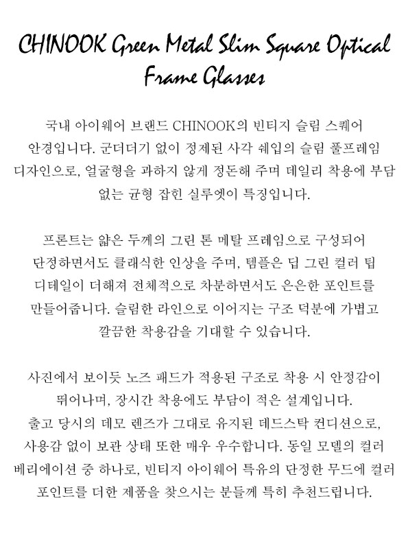 CHINOOK Green Metal Slim Square Optical Frame Glasses