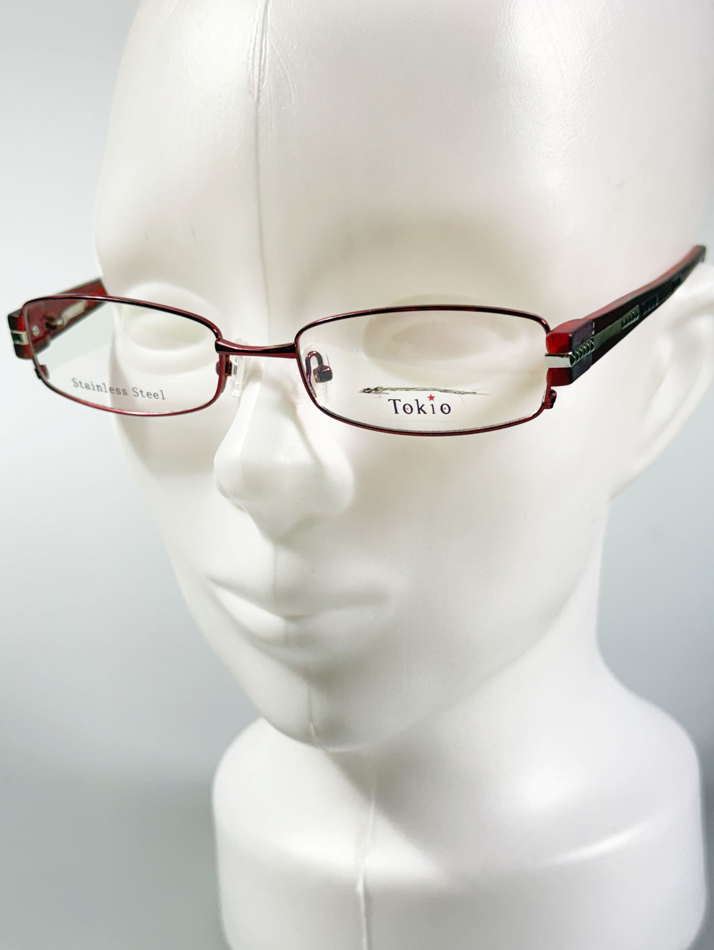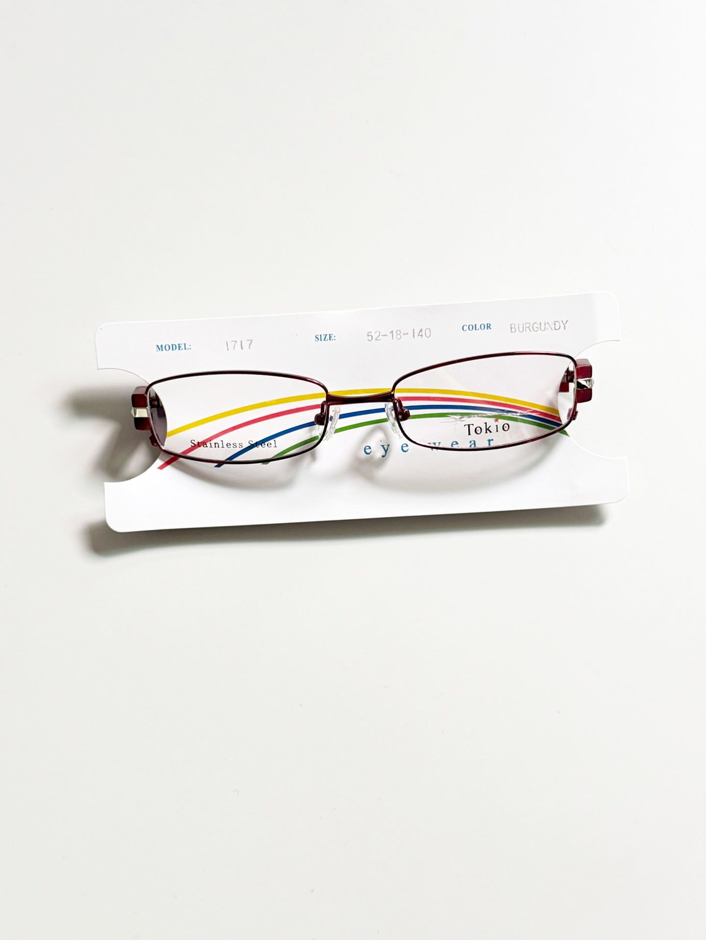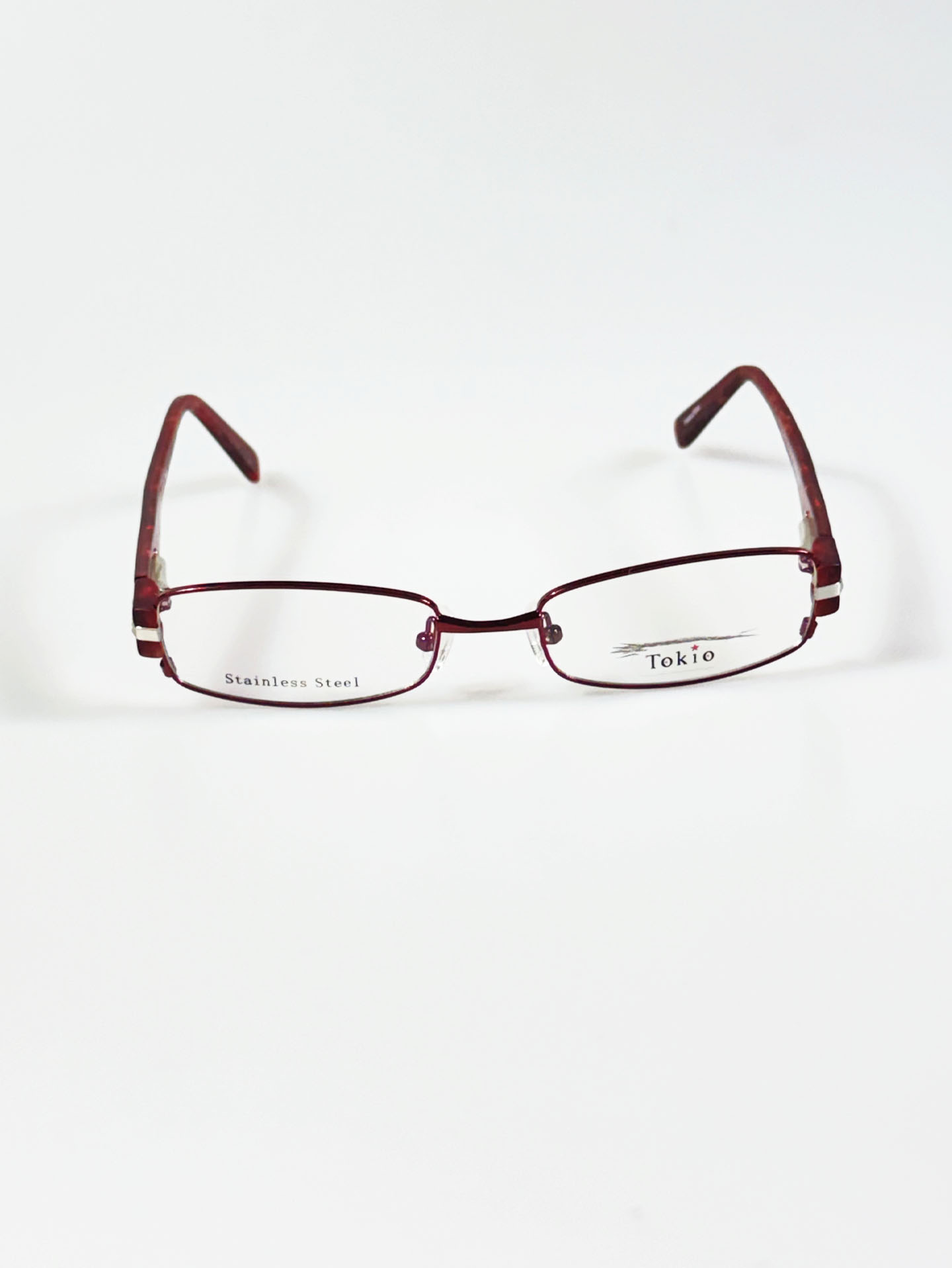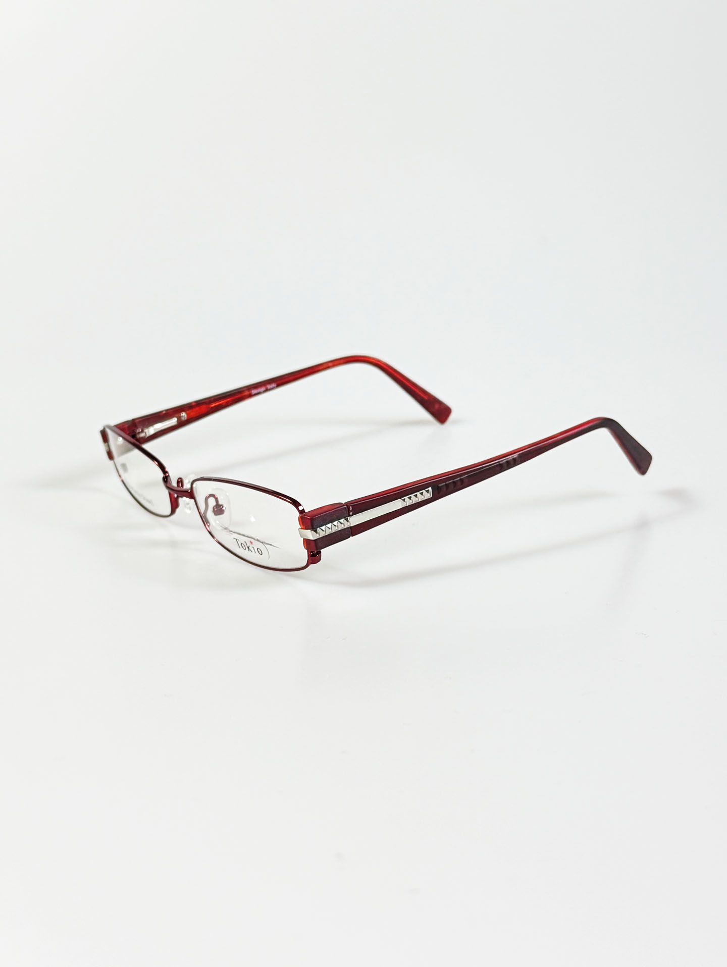 90's TOKIO Burgundy Metal Slim Square Glasses